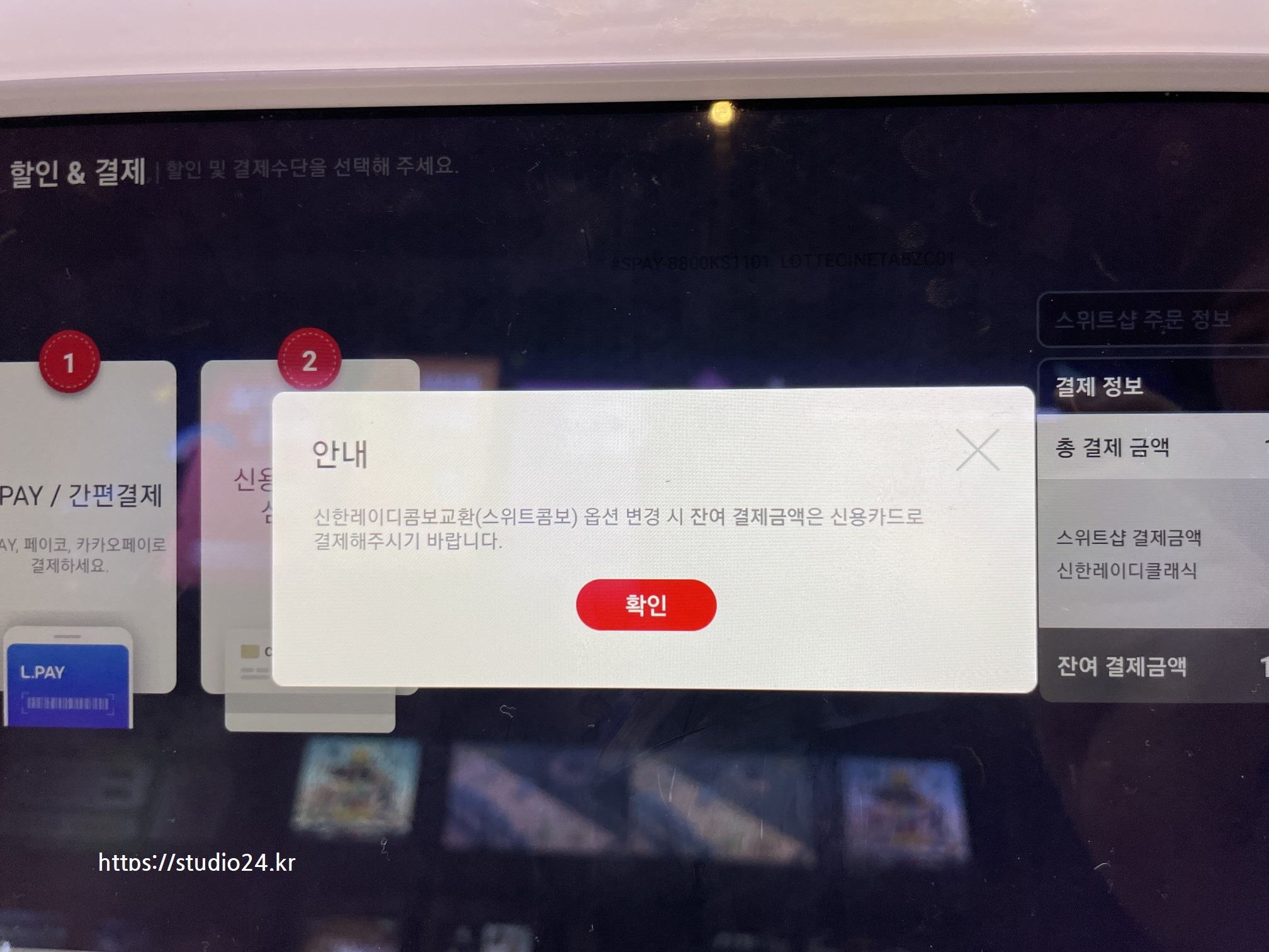 추가 결제는 다른 카드도 이용가능 했습니다.
