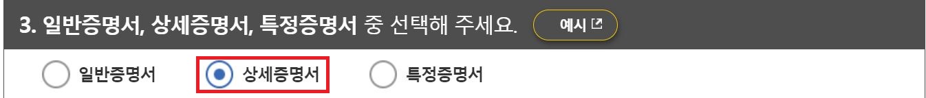 증명서 종류 선택에서 상세증명서 선택