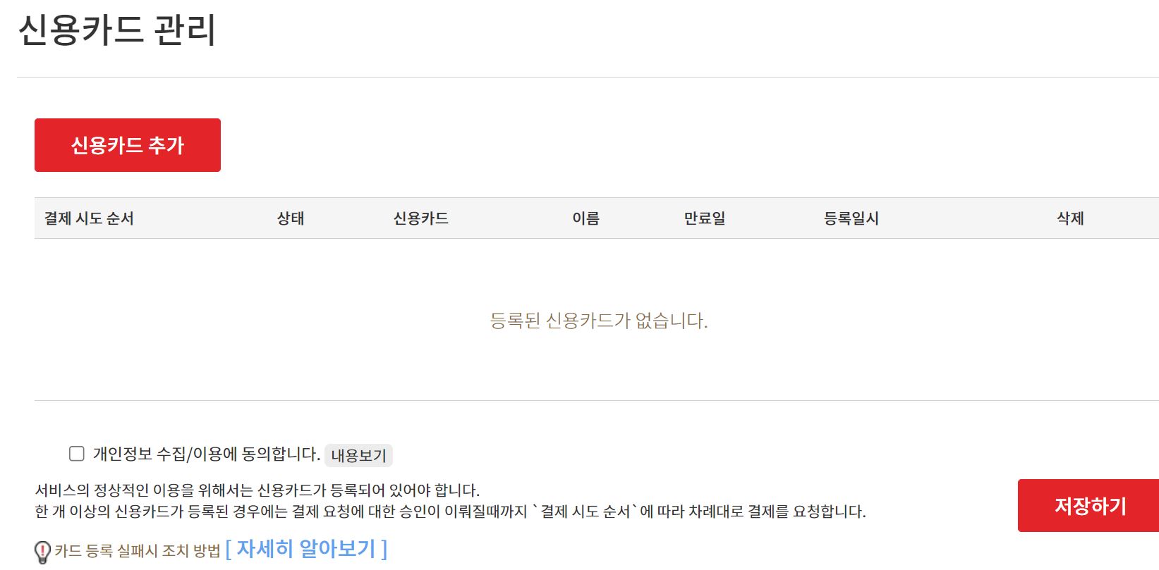 여기까지 진행하신 분들은 다음 단계를 가지 전 신용카드 등록 페이지가 나옵니다.
