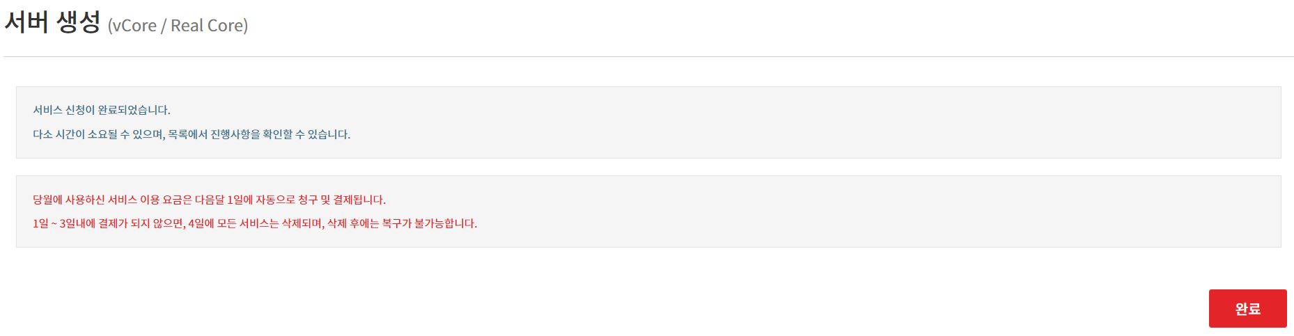 서버 생성 작업을 완료했습니다.