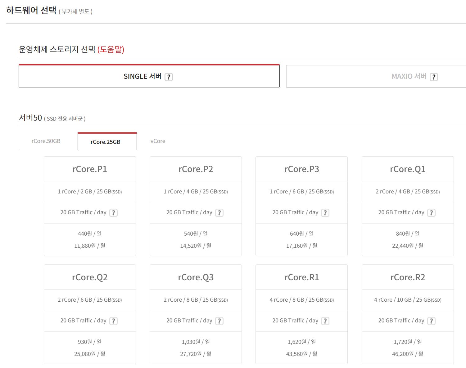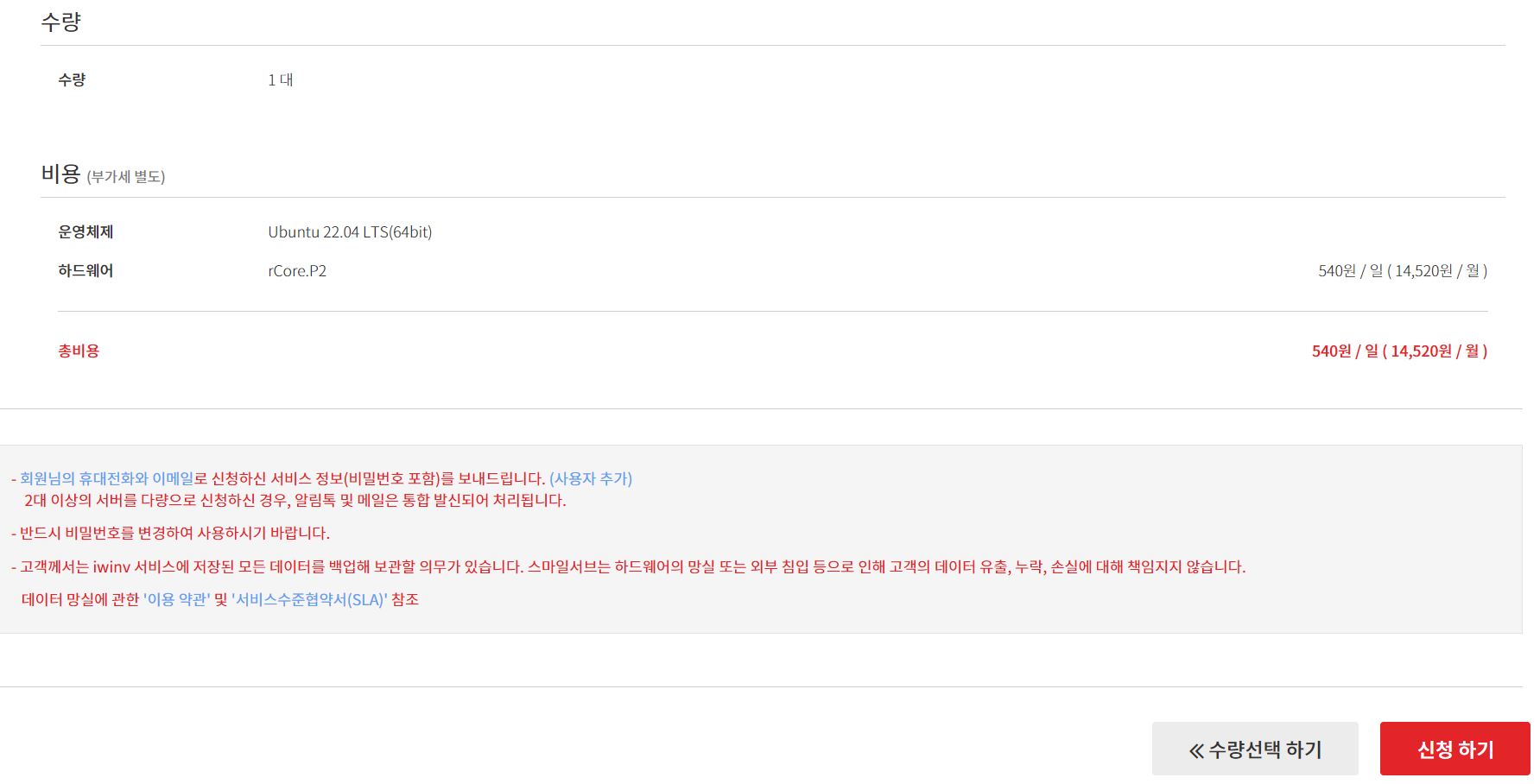 저는 가장 저렴한 P1 월 11,880원 서버와 P2 월 14,520원