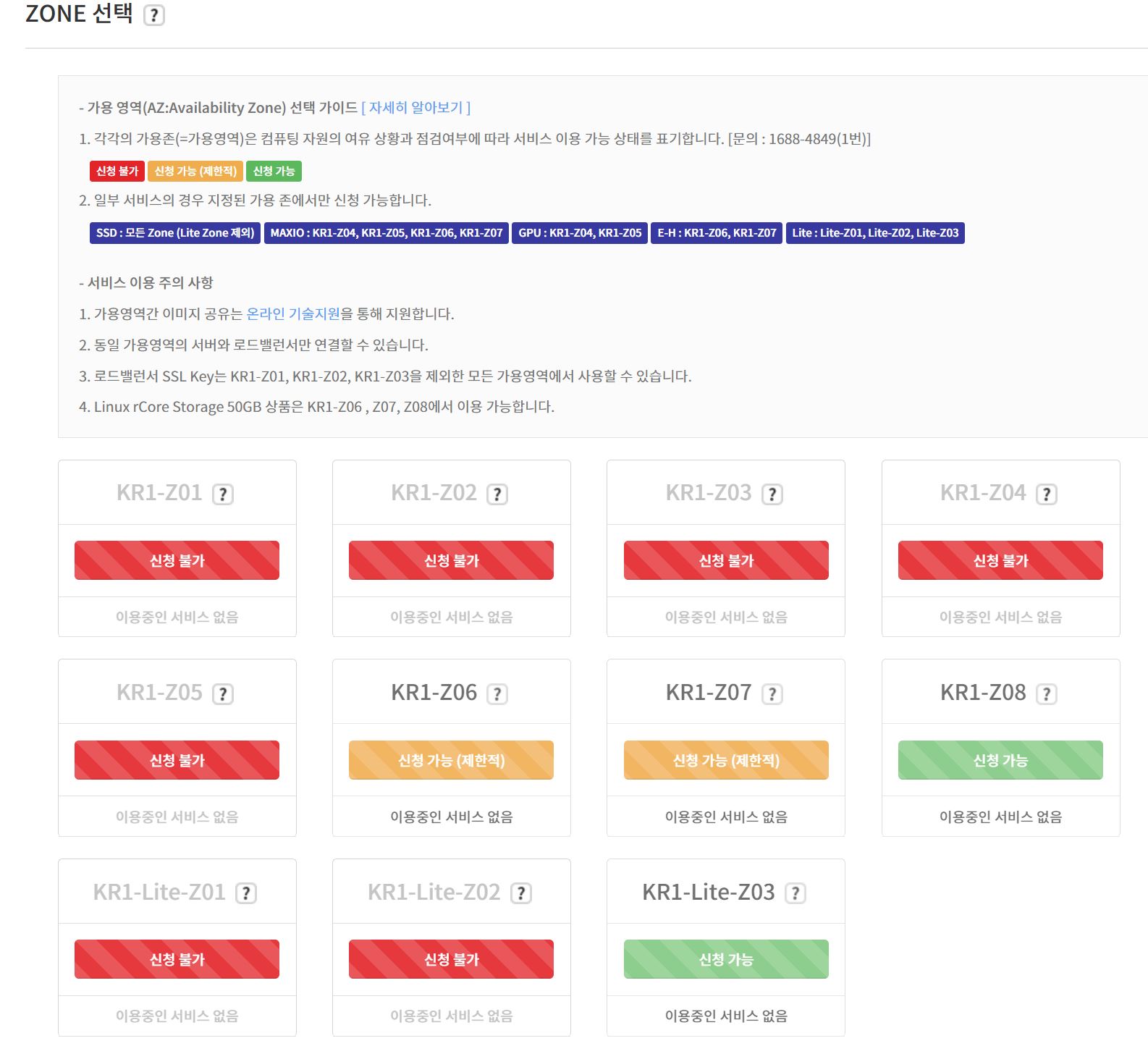 신청 가능한 서버는 KR1-Z08, KR1-Lite-Z03
