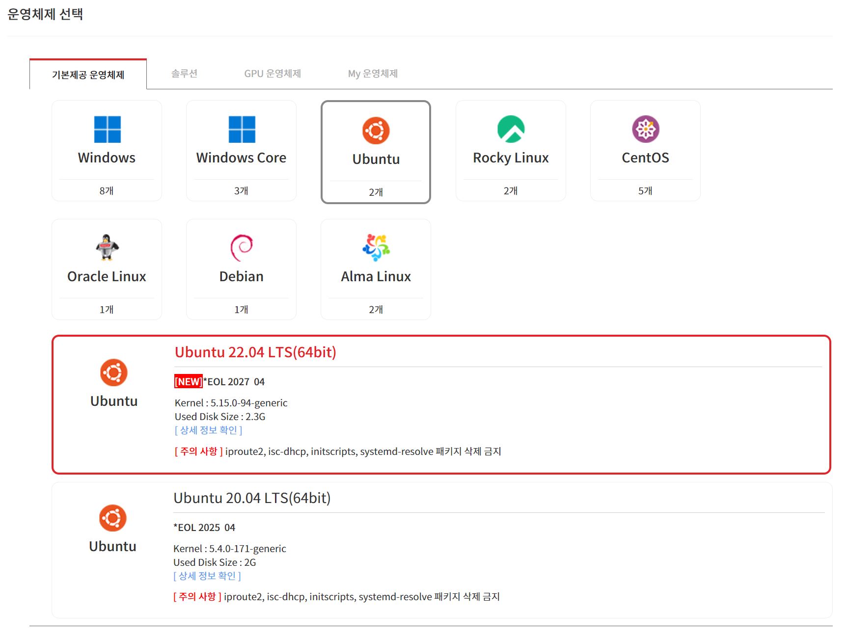 Ubuntu 22.04 LTS (64bit)를 선택합니다.
