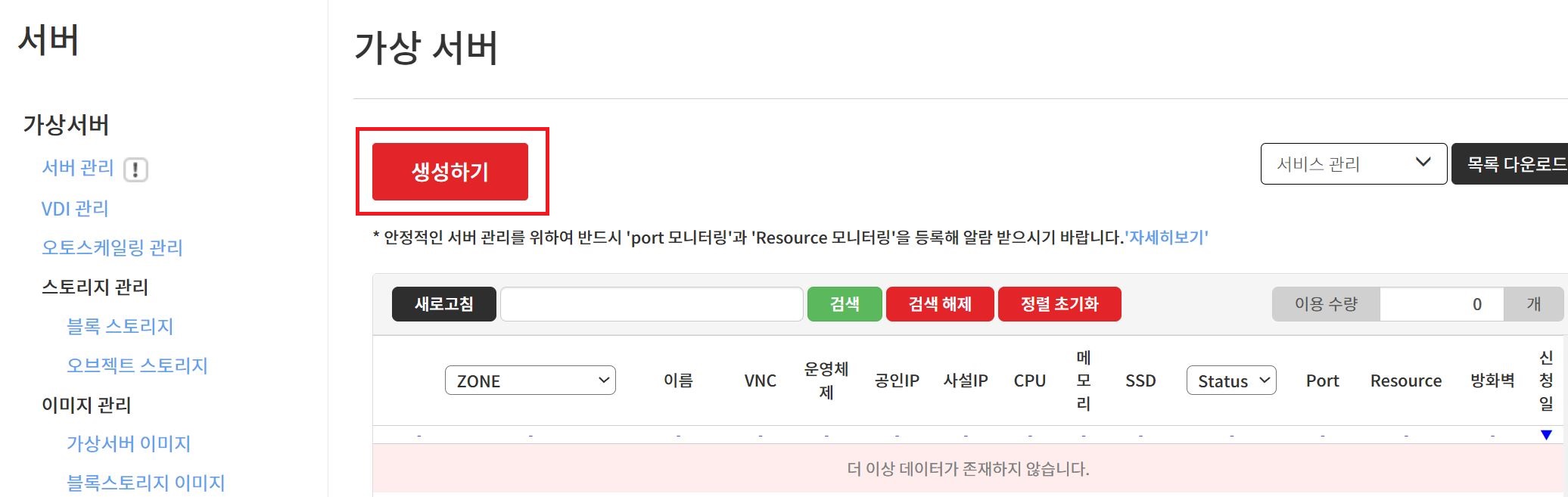 서버 용량을 추가할 수 있습니다.