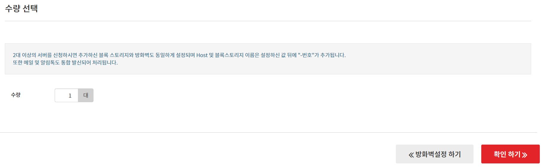 사용 클릭 후 방화벽 이름 입력하고 수량 선택 클릭