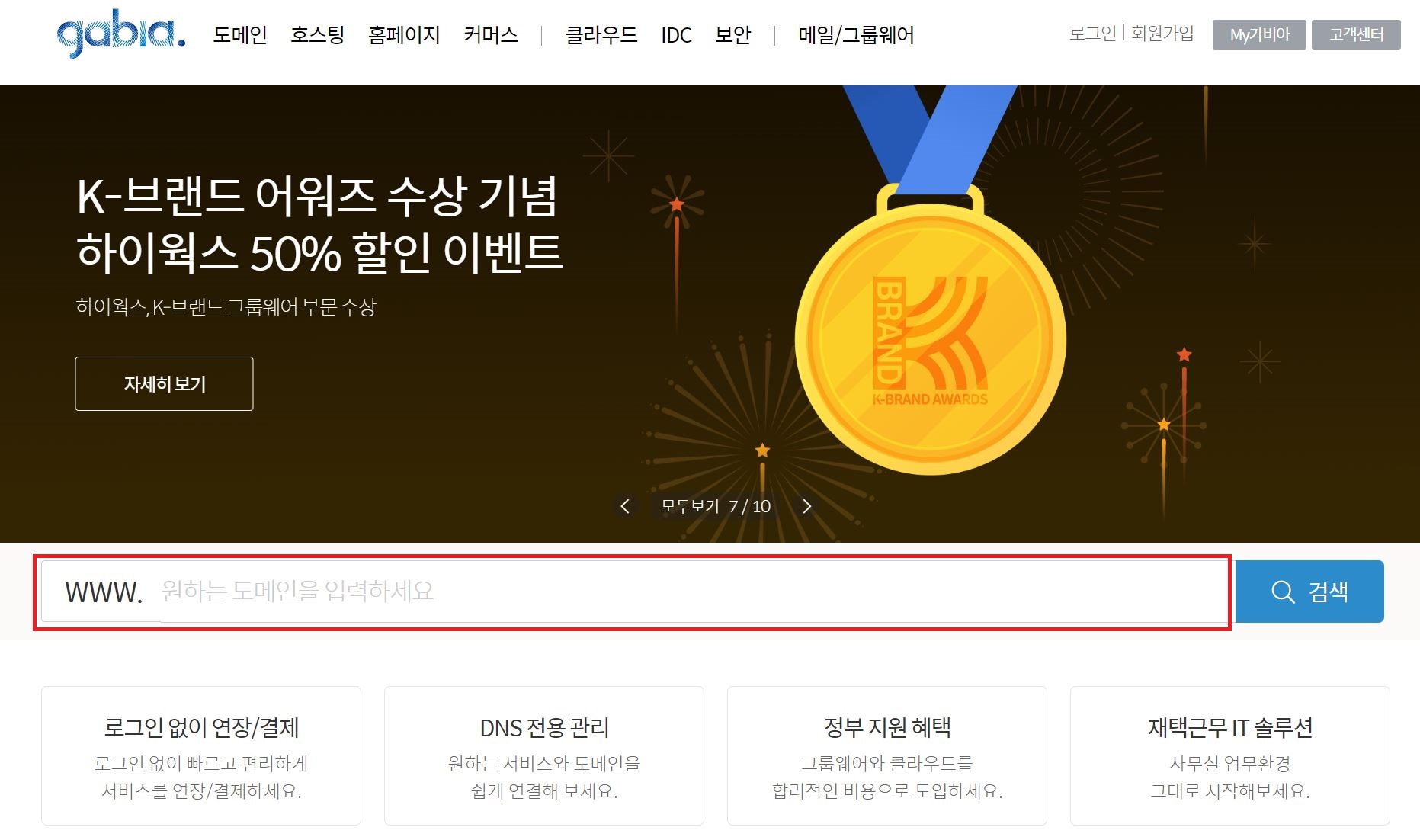 다양한 도메인 구입 사이트가 있고, 가장 할인이 많이 되고 있는 가비아를 사용했습니다.