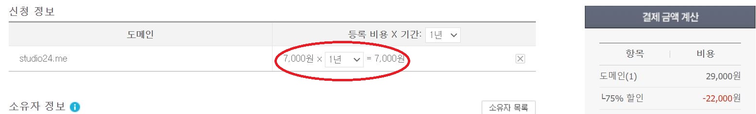결제해주고 해당 도메인을 구입합니다.