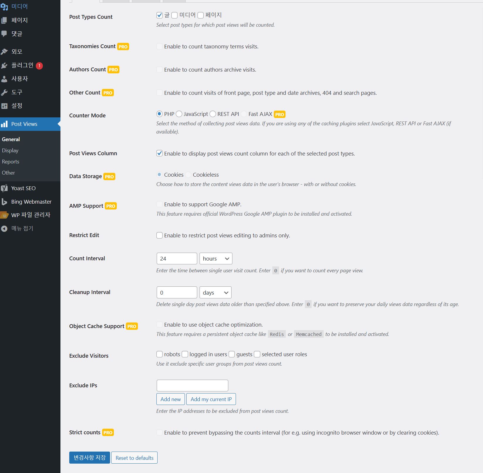 다양한 플러그인이 있지만, 저는 무료로 사용할 수 있는 Post Views Counter을 사용했습니다.