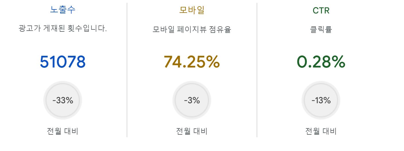 | 구글 애드센스, 2023년 10월 보고서 : 수익 2% 감소 (0) | 2024.04.10 |