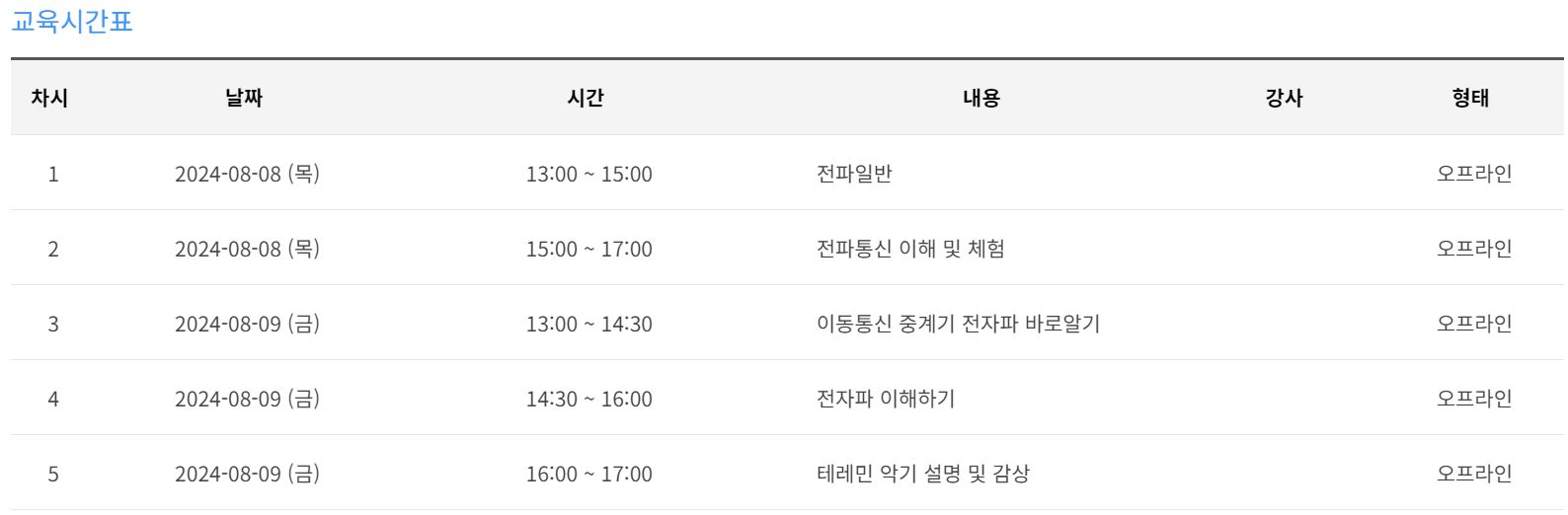 교육일정 : 2024년 8월 8일 목요일 ~ 9일 금요일