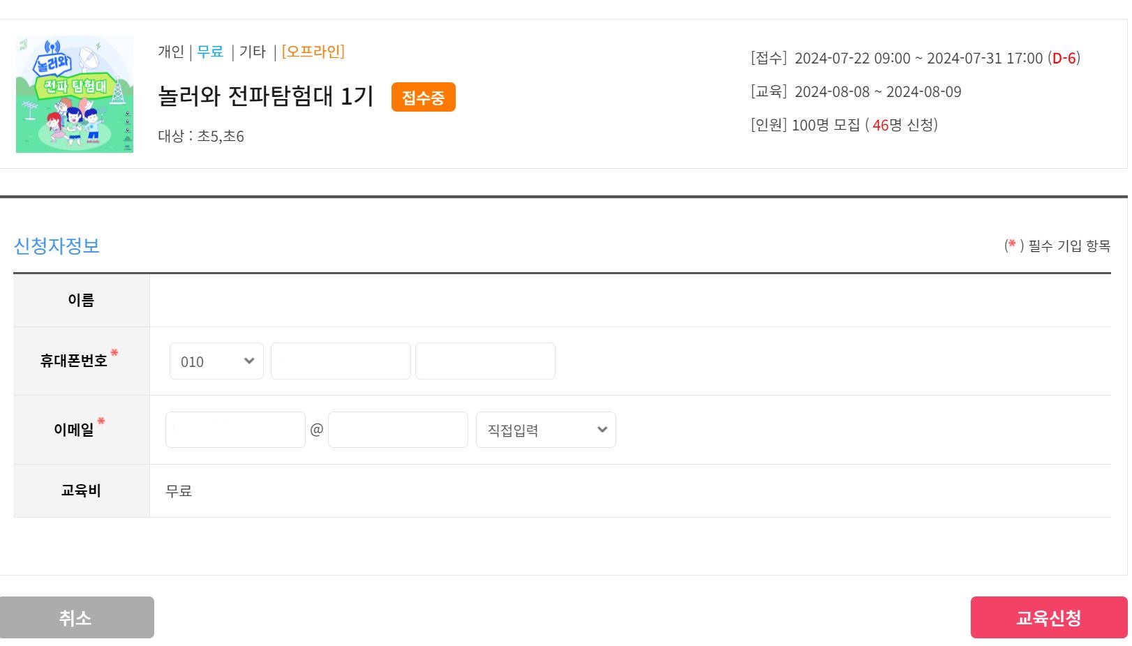 놀러와 전파탐험대 1기 교육 신청 완료!