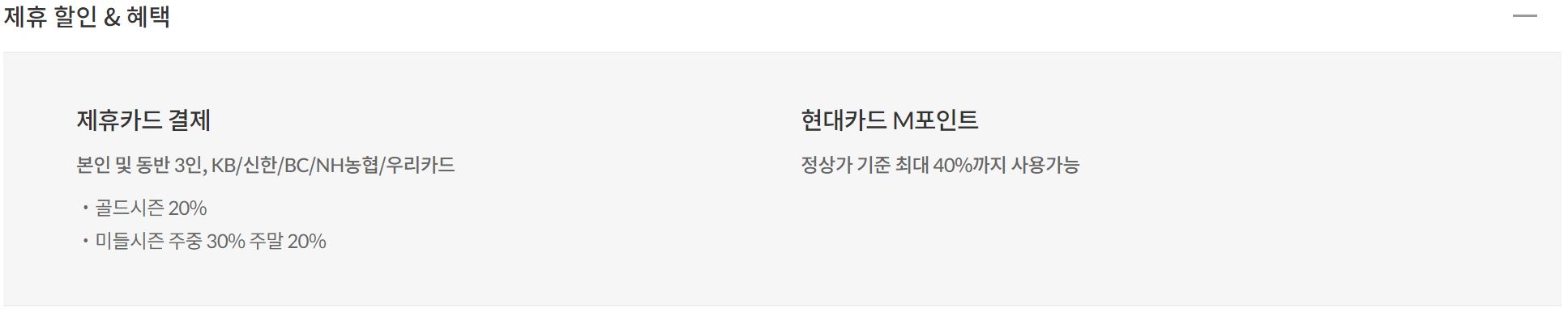 제휴 카드 할인, 투숙객과 동일합니다.