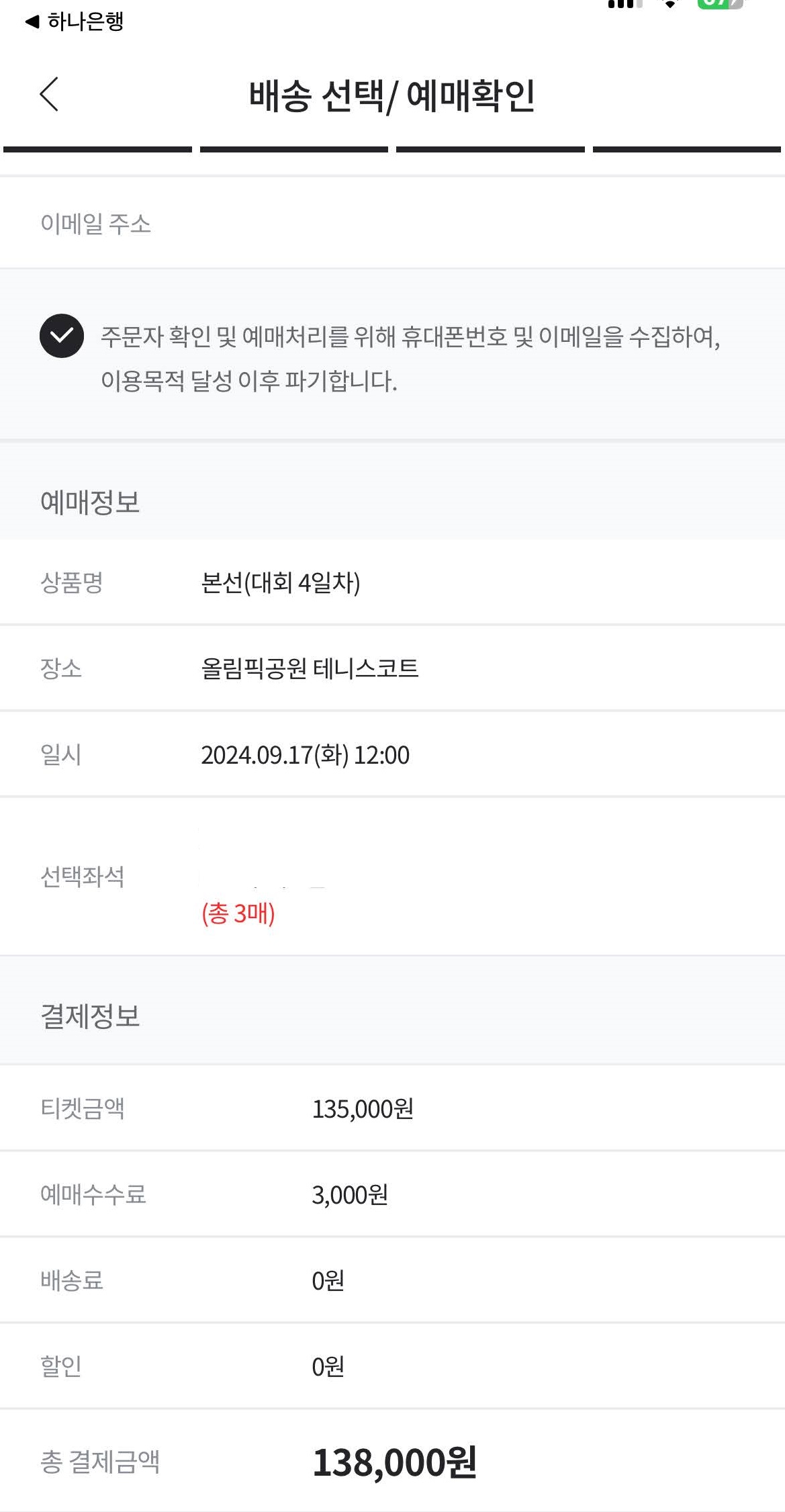 R석 3매, 138,000원