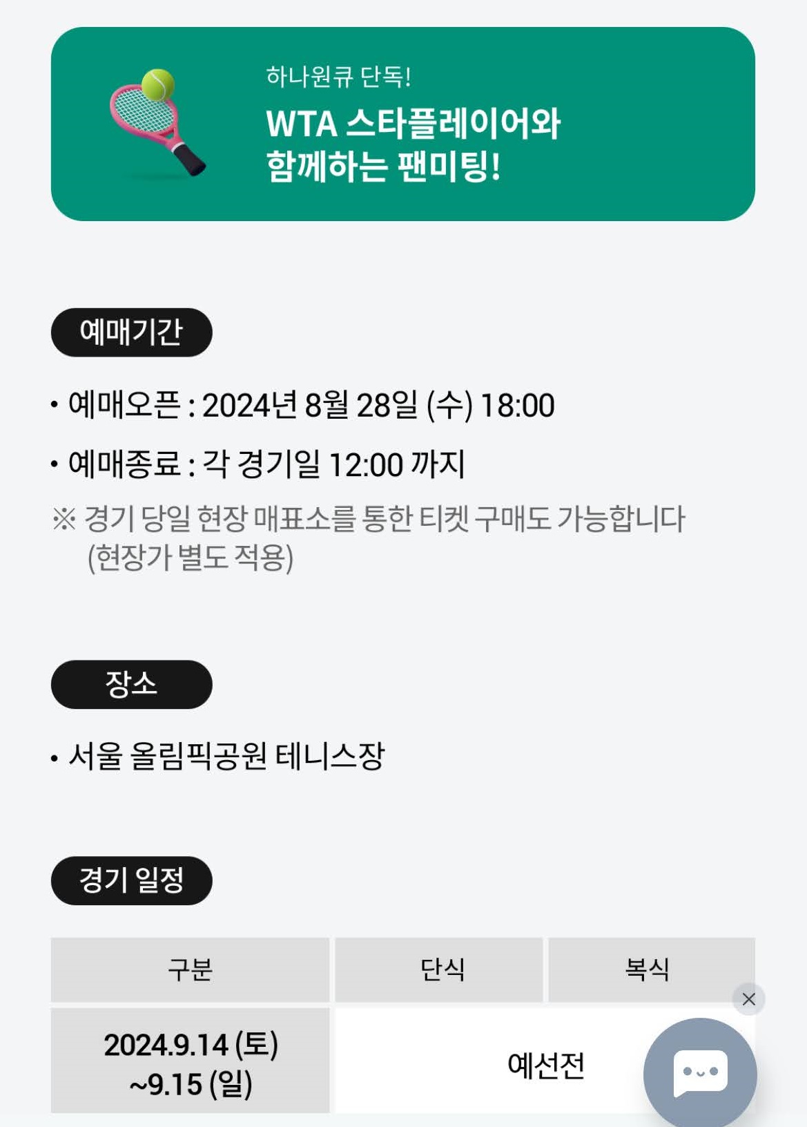 | 테니스, WTA500 2024 KOREA OPEN 일정 및 티켓 예매 일정 (4) | 2024.09.03 |