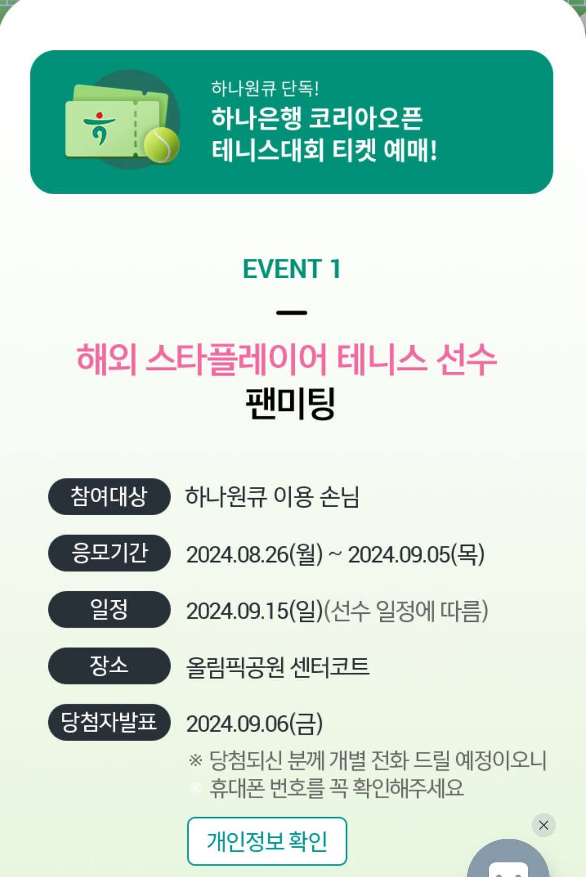 메인 스폰서는 하나은행, 작년과 다르게 하나카드 사용 혜택이 전혀 없었습니다.