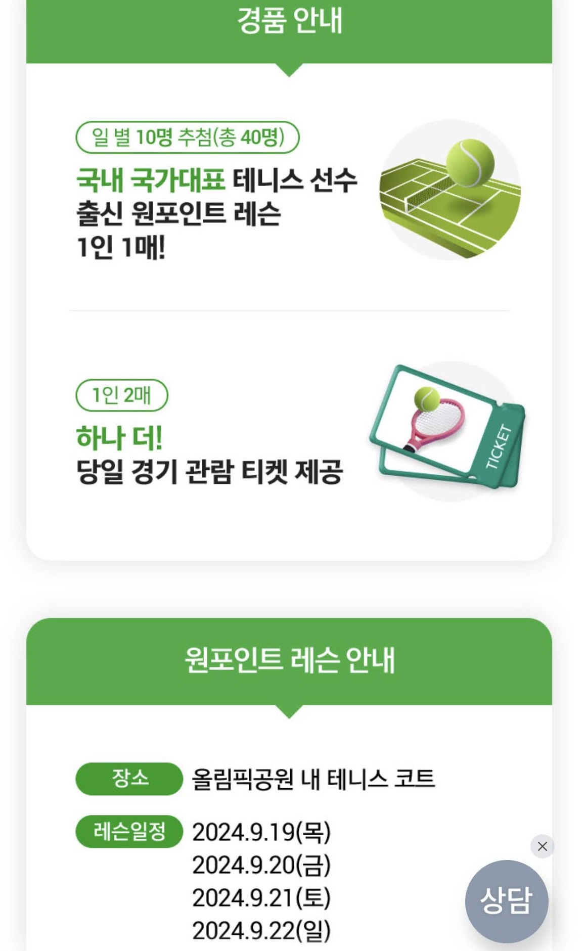 자유석이지만, 수준 높은 선수를 직접 관람할 수 있으니, 이벤트에 참여하시거나, 자유석으로 관람하시면 어떨까요?