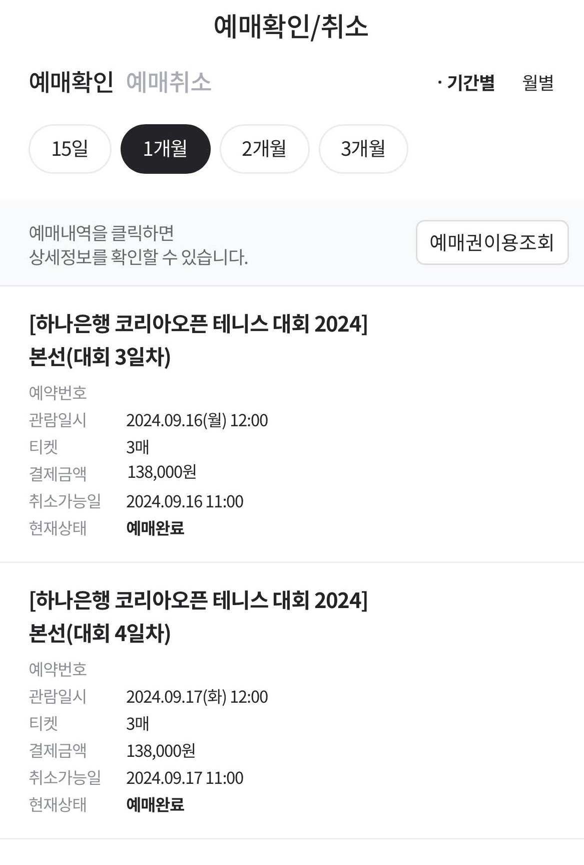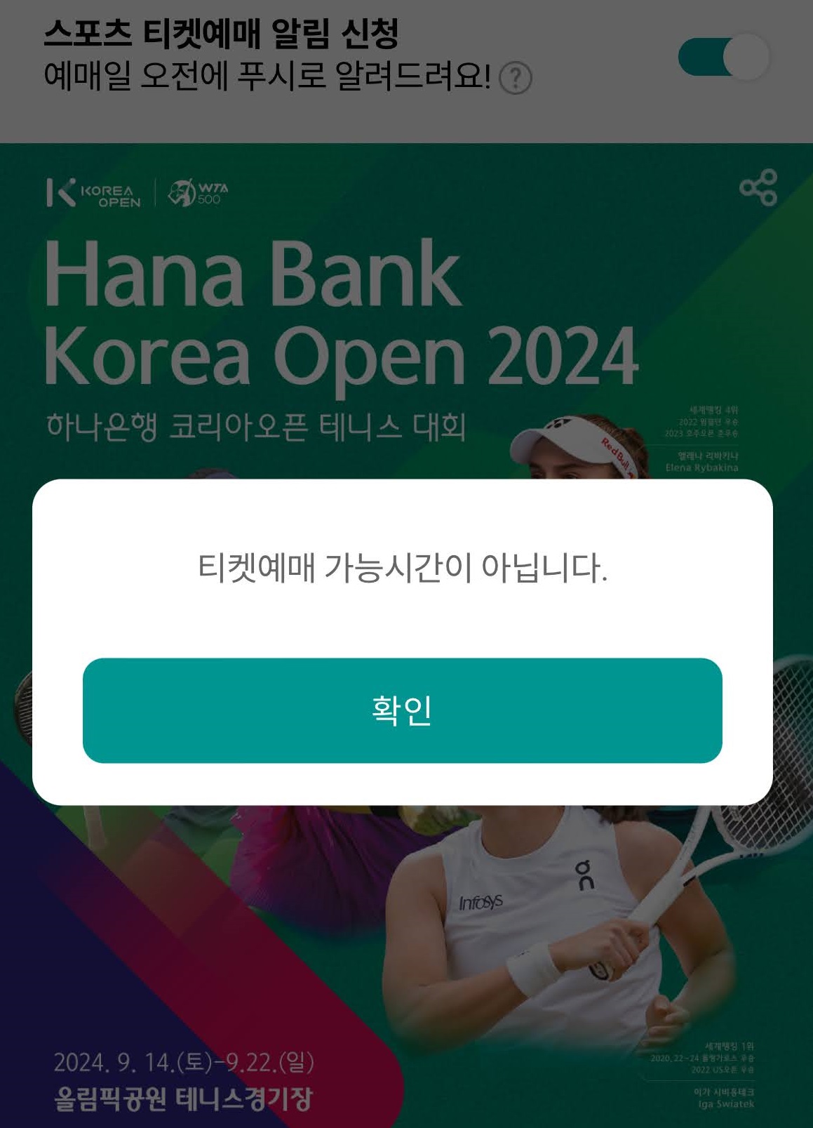 코리아 오픈 2024 티켓 예매가 진행되었습니다.