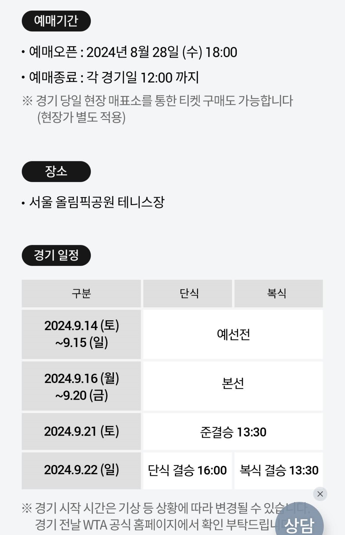 | 테니스, WTA500 2024 KOREA OPEN 일정 및 티켓 예매 일정 (4) | 2024.09.03 |