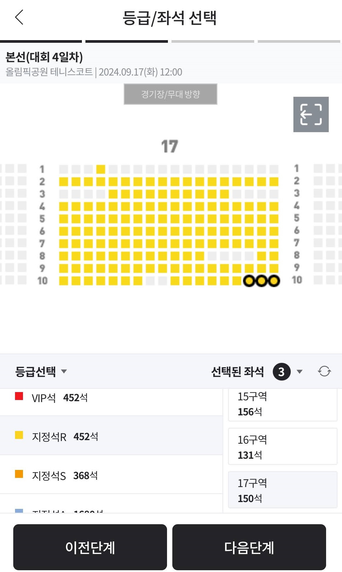17 구역 10열 좌석을 선택했습니다.