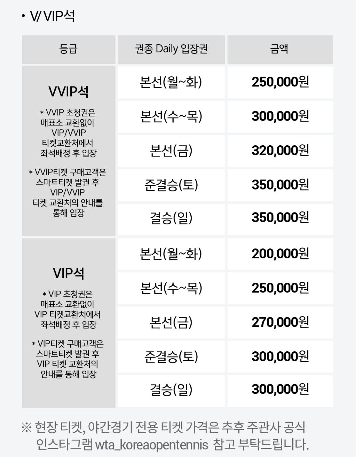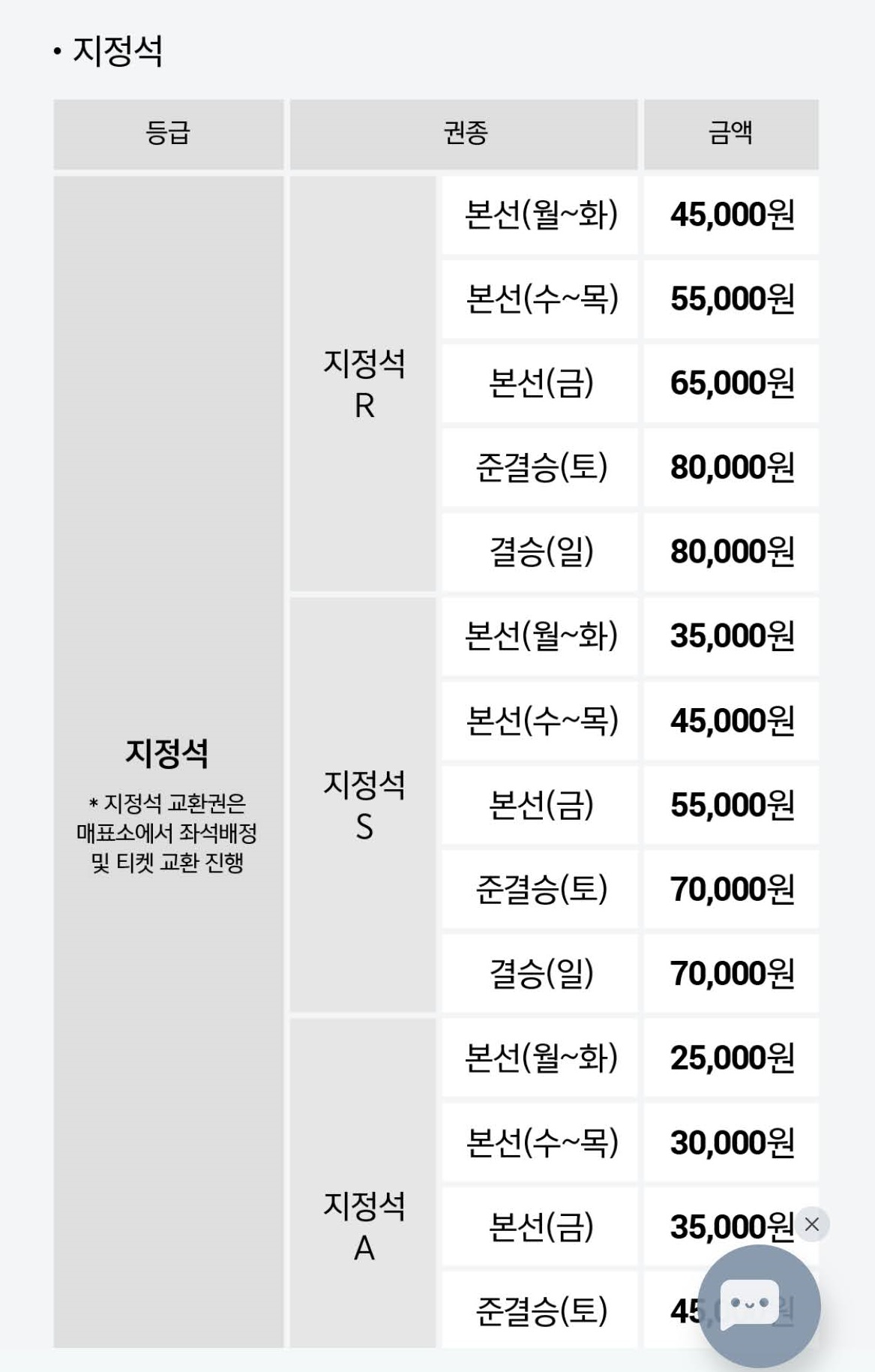 (자유석의 경우 본선 8강까지 작년 대비 5천원의 가격 인상이 있습니다.)