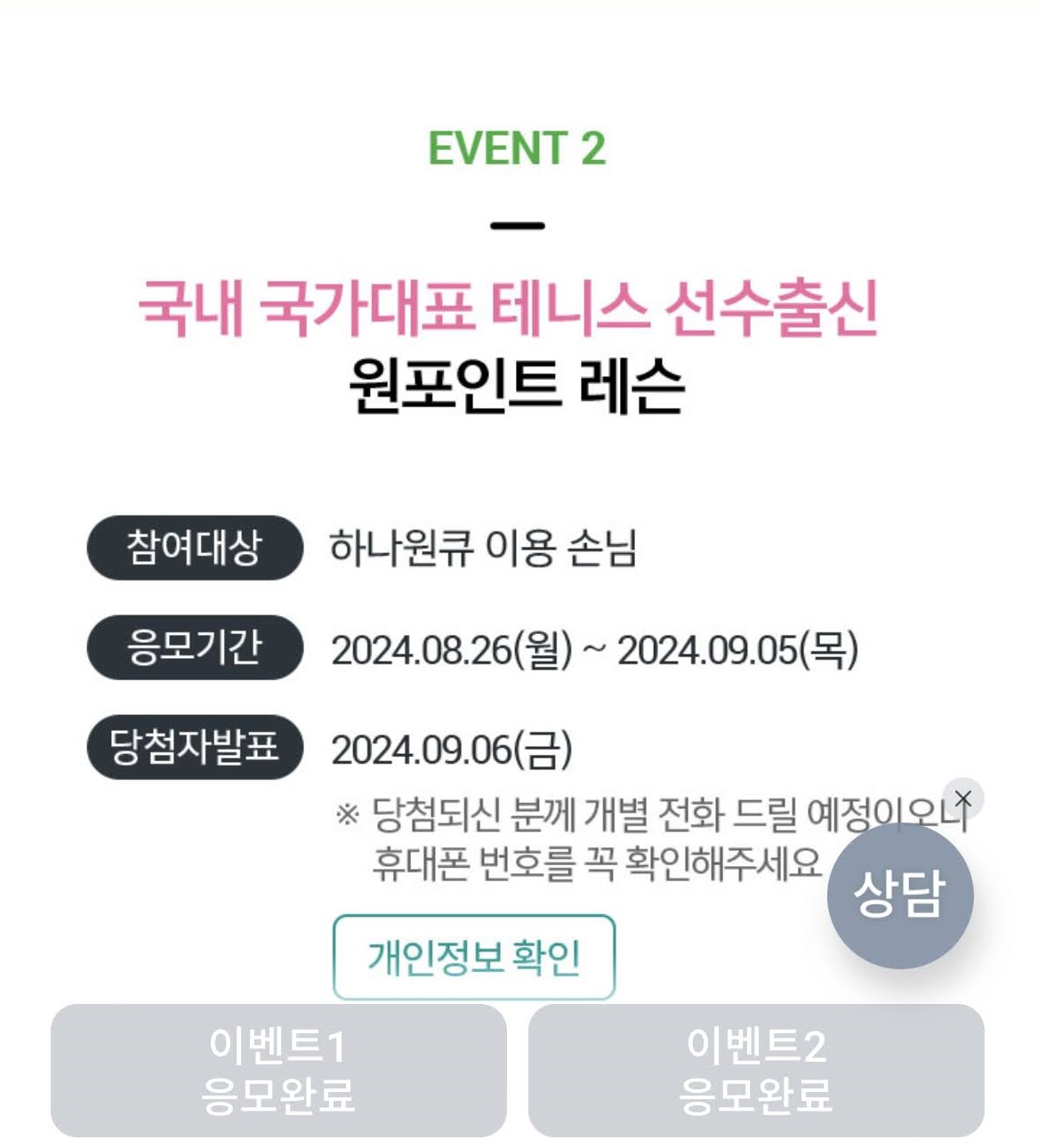 하나원큐 단독 이벤트