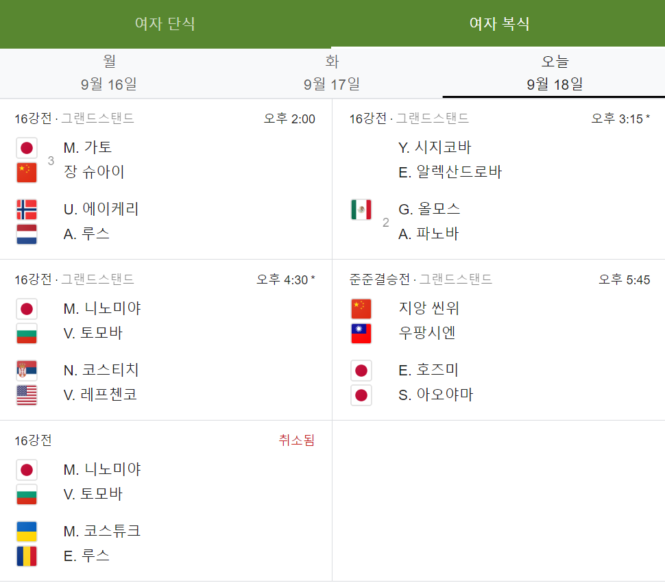 | 테니스, WTA500 2024 코리아 오픈 테니스 R32 둘째날 경기 일정 (0) | 2024.09.17 |