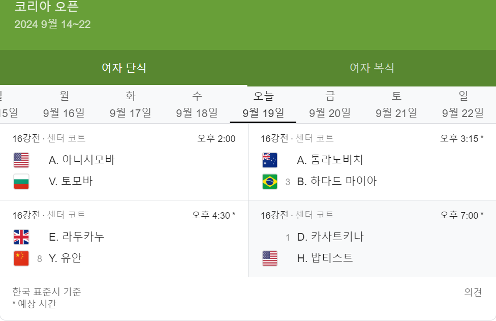 | 테니스, WTA500 2024 코리아오픈 테니스 R16 경기 일정 (12) | 2024.09.18 |
