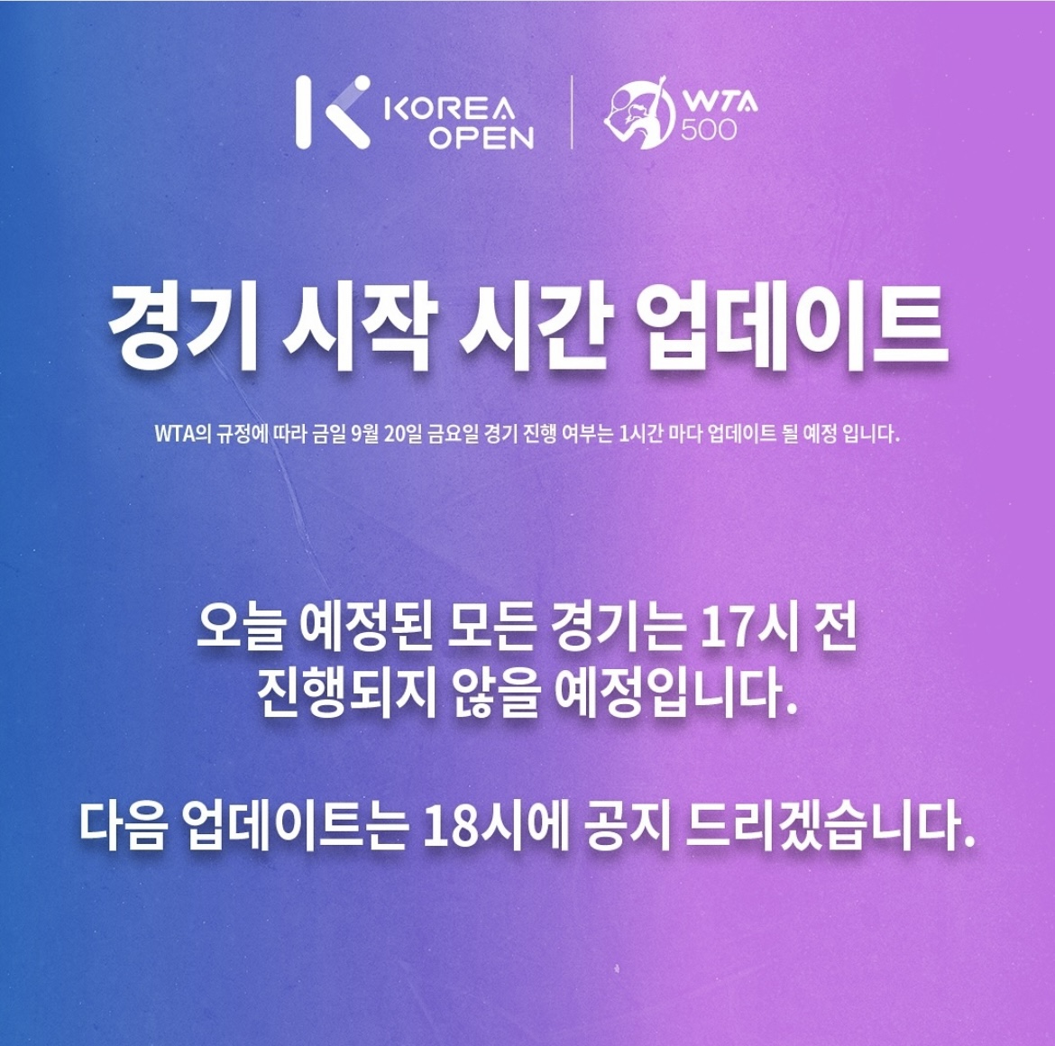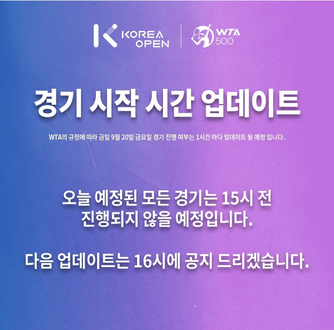 WTA 규정에 따라, 경기 진행 여부는 오후 2시부터 1시간 단위 업데이트