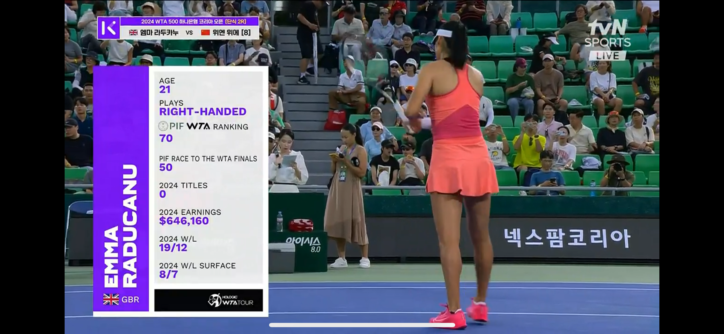테니스, Hana Bank Korea Open 2024 R16 Ajla Tomljanovic VS Beatriz Haddad Maia (0) | 2024.09.26 |