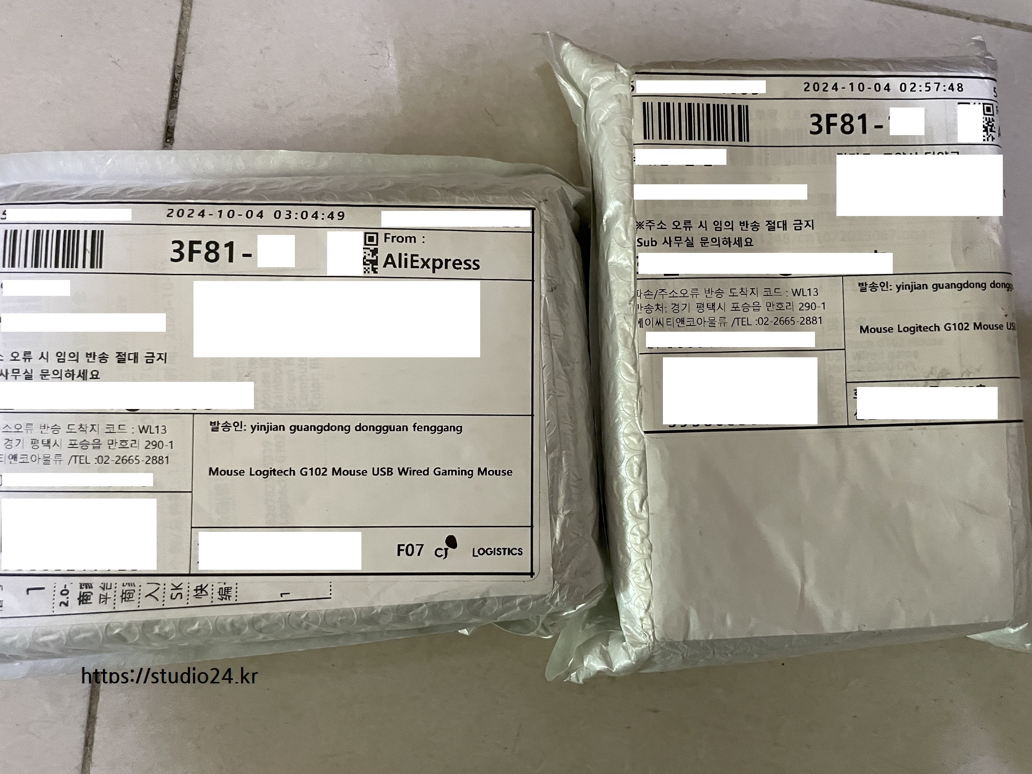 알리에서 주문한 로지텍 게이밍 마우스 G102 제품이 도착했습니다.