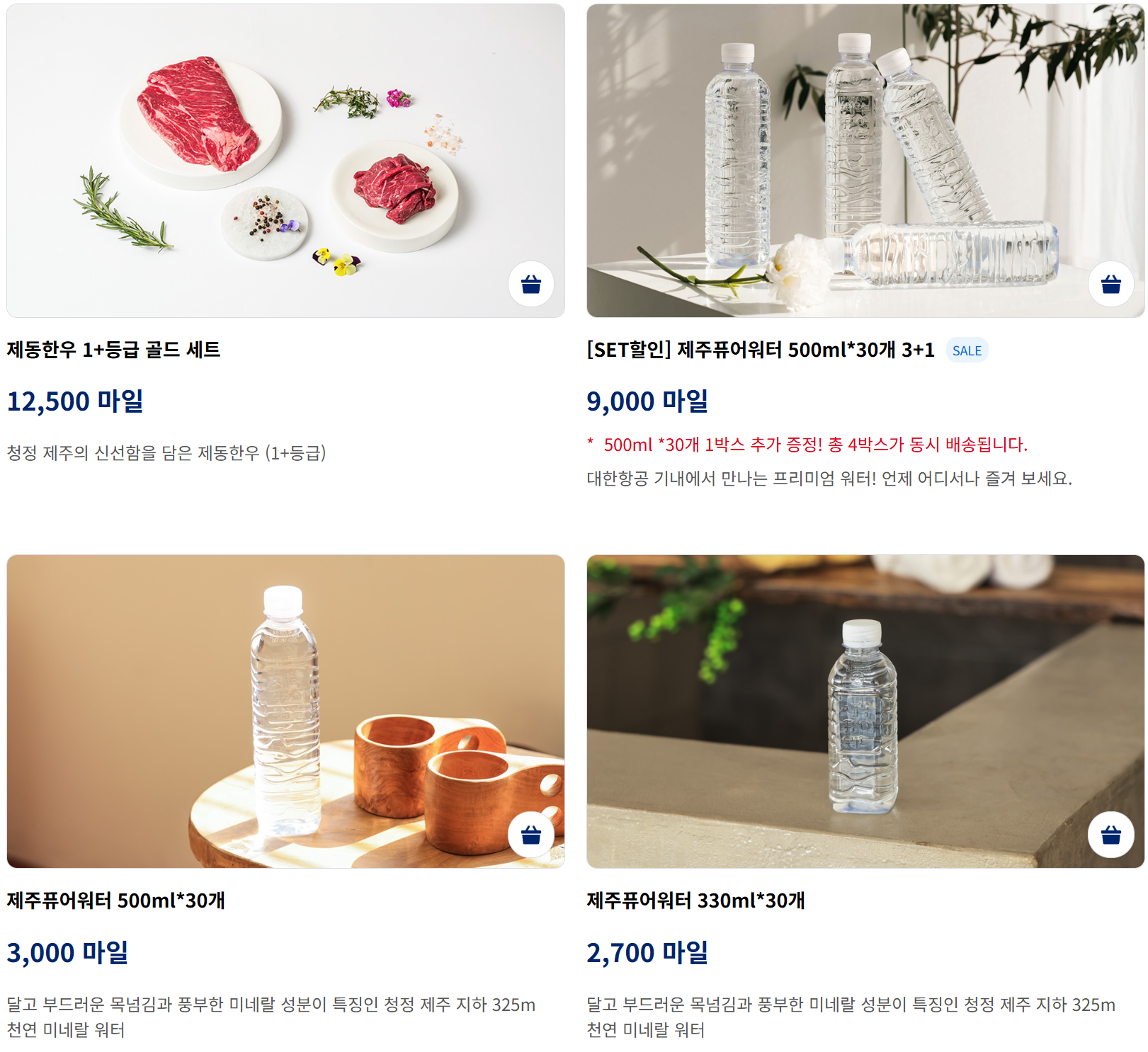 이번 대한항공 마일리지 상품은 조금 다양하게 구성되어 있습니다.