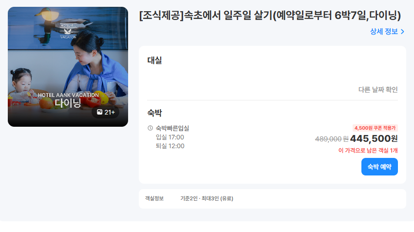 팁이 있다면, 12시 바로 지나서 예약하면 사이트 할인과 카드사 선착순 할인을 동시에 받을 수 있어요.