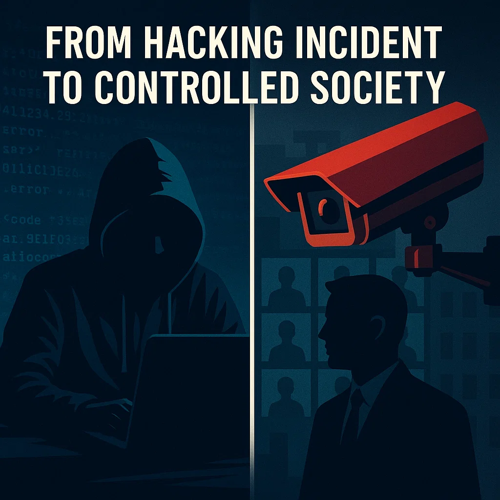 최근 빈발하는 해킹 사건이 어떻게 디지털 감시 강화 → 통제 사회로의 전환을 촉발하는지, 그 메커니즘과 구체적 시나리오를 분석합니다.