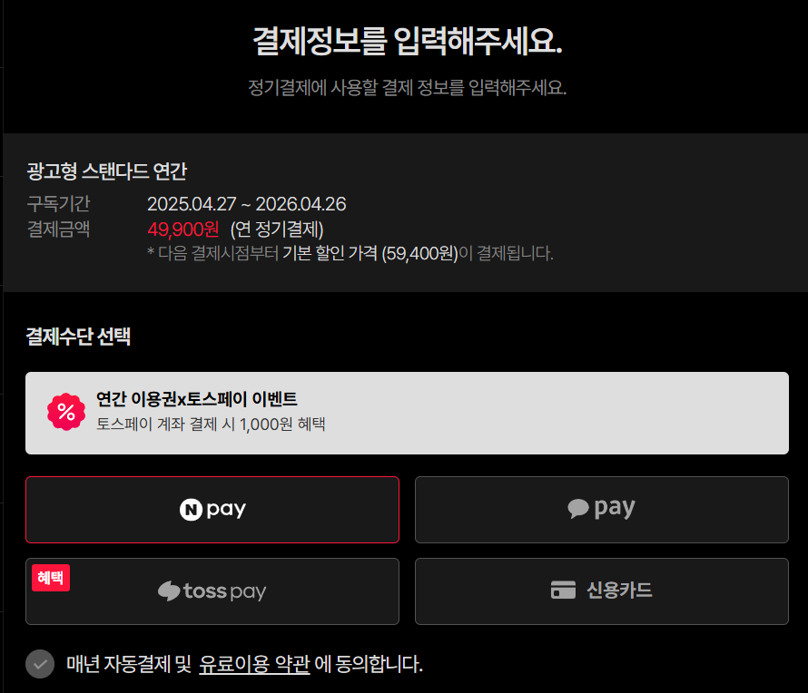 여기서 또 고민 연간 구독을 하면 49,900원