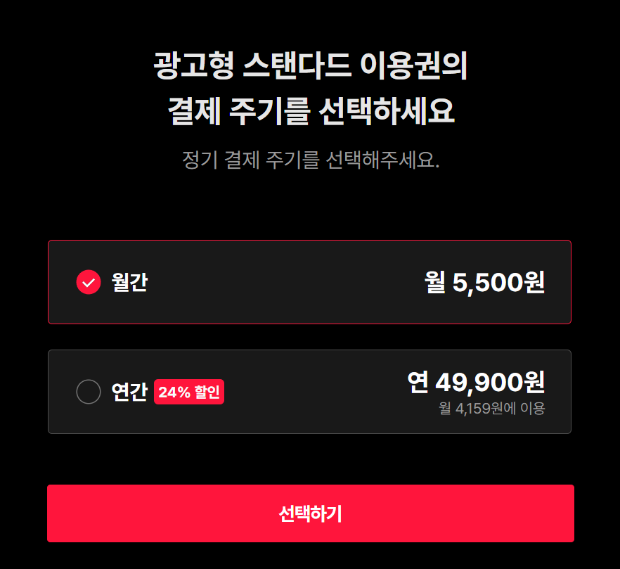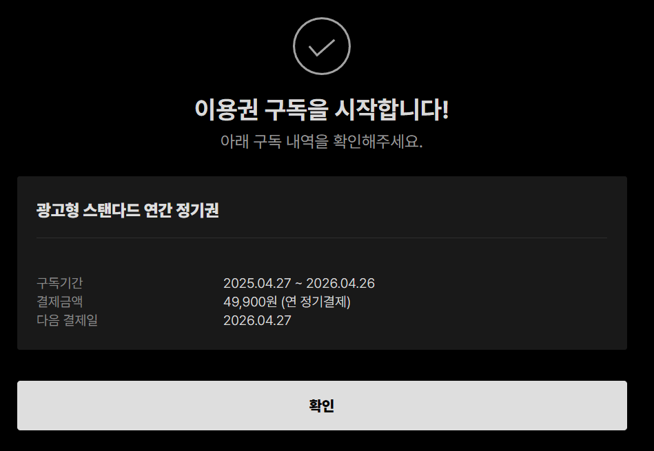 이렇게 광고형 스탠다그 연간 정기권에 가입했습니다.