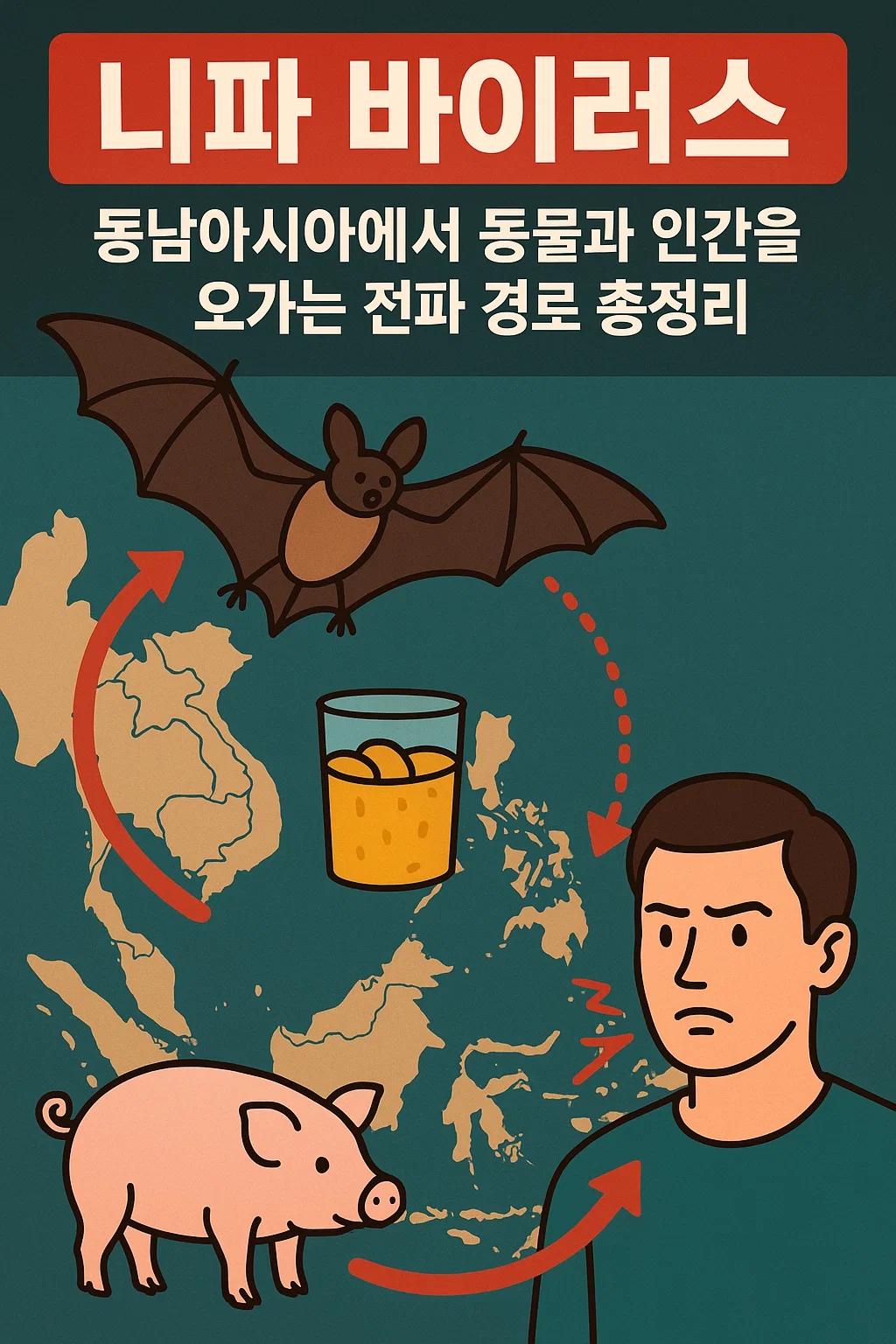이 바이러스는 과일박쥐에서 시작해 돼지, 인간으로 확산되며, 인수공통전염병(Zoonosis)의 대표 사례로 꼽힙니다.