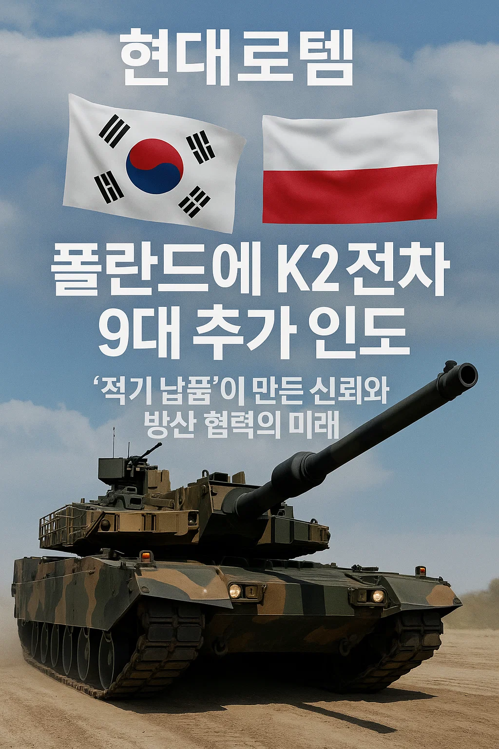 현대로템이 폴란드에 K2 전차 9대를 추가 인도하며 폴란드군 전력 강화와 한-폴란드 방산 협력에 어떤 의미를 남겼는지, 그리고 ‘적기 납품’이 왜 글로벌 방산 시장에서 신뢰의 핵심 가치로 주목받는지 심층적으로 정리합니다.