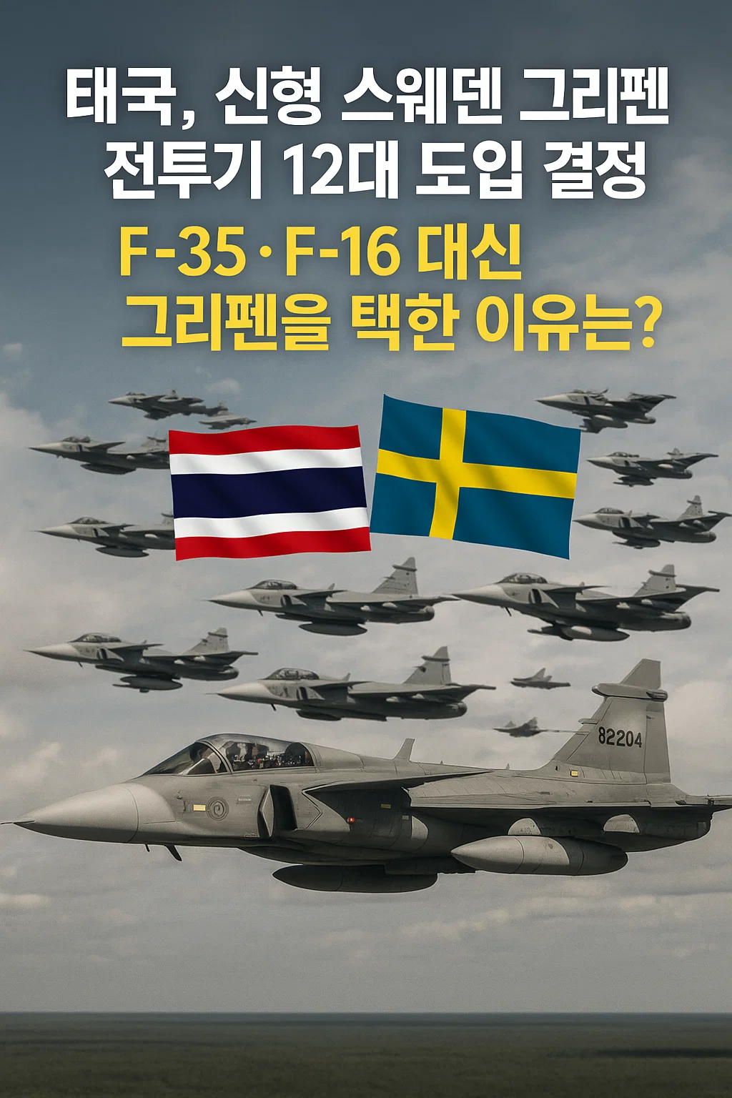 태국 정부가 최근 발표한 스웨덴 사브사의 JAS 39 그리펜 E/F 전투기 12대 도입 결정의 배경과 의미, 그리고 미국산 F-35·F-16 대신 그리펜을 선택한 이유를 심층적으로 정리합니다.