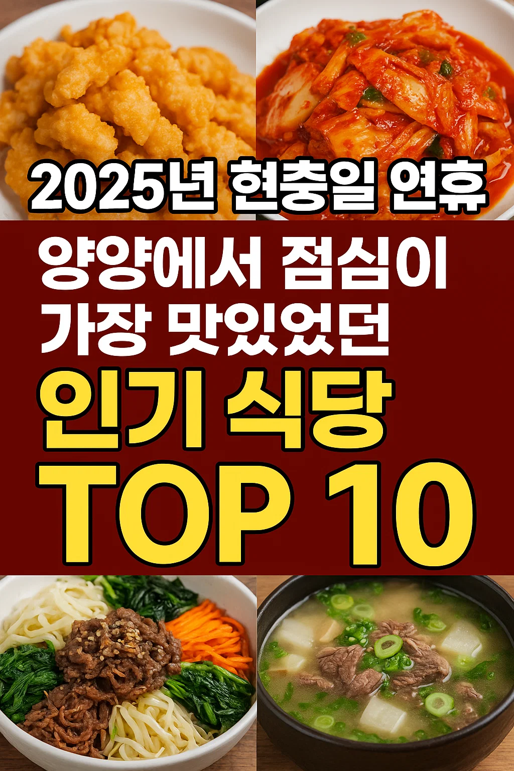 실시간 인기 순위와 현지인 추천, 여행객 리뷰를 모두 반영해 양양에서 연휴 기간 가장 인기 좋았던 점심 식당 TOP 10을 정리합니다.
