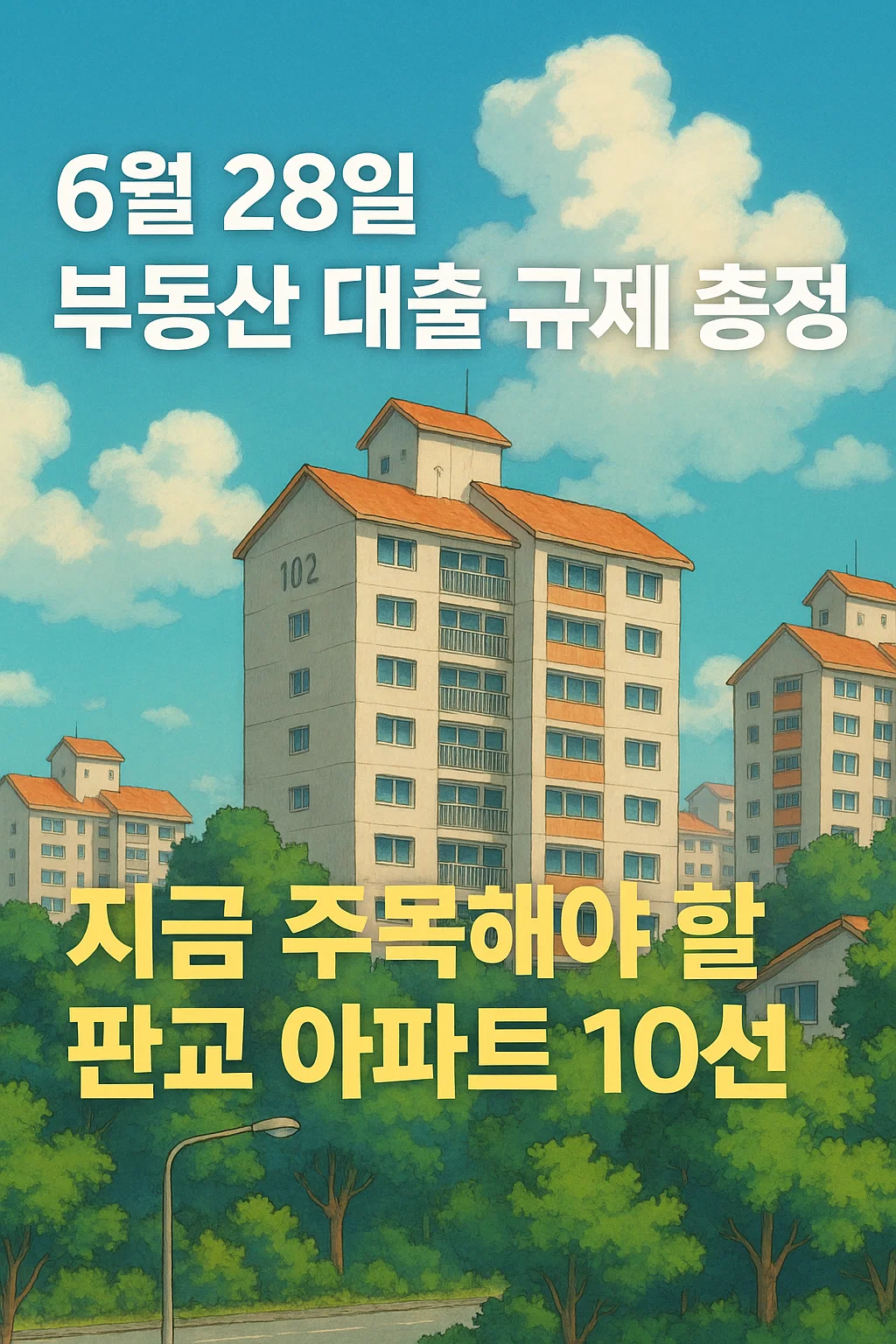이제 6월 28일 부동산 대출 규제의 핵심과, 판교 지역에서 지금 주목해야 할 아파트 리스트까지 한눈에 정리했습니다.