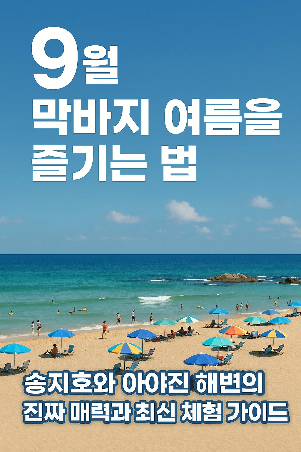 2025년 9월, 여름이 끝난 듯 끝나지 않은 동해의 ‘막바지 해변 휴가’ 송지호와 아야진 해변은 맑은 물, 한적한 분위기, 성수기 대비 저렴한 숙박의 삼박자로 가족·연인·친구 모두에게 가장 스마트한 가을맞이 피서 옵션입니다.