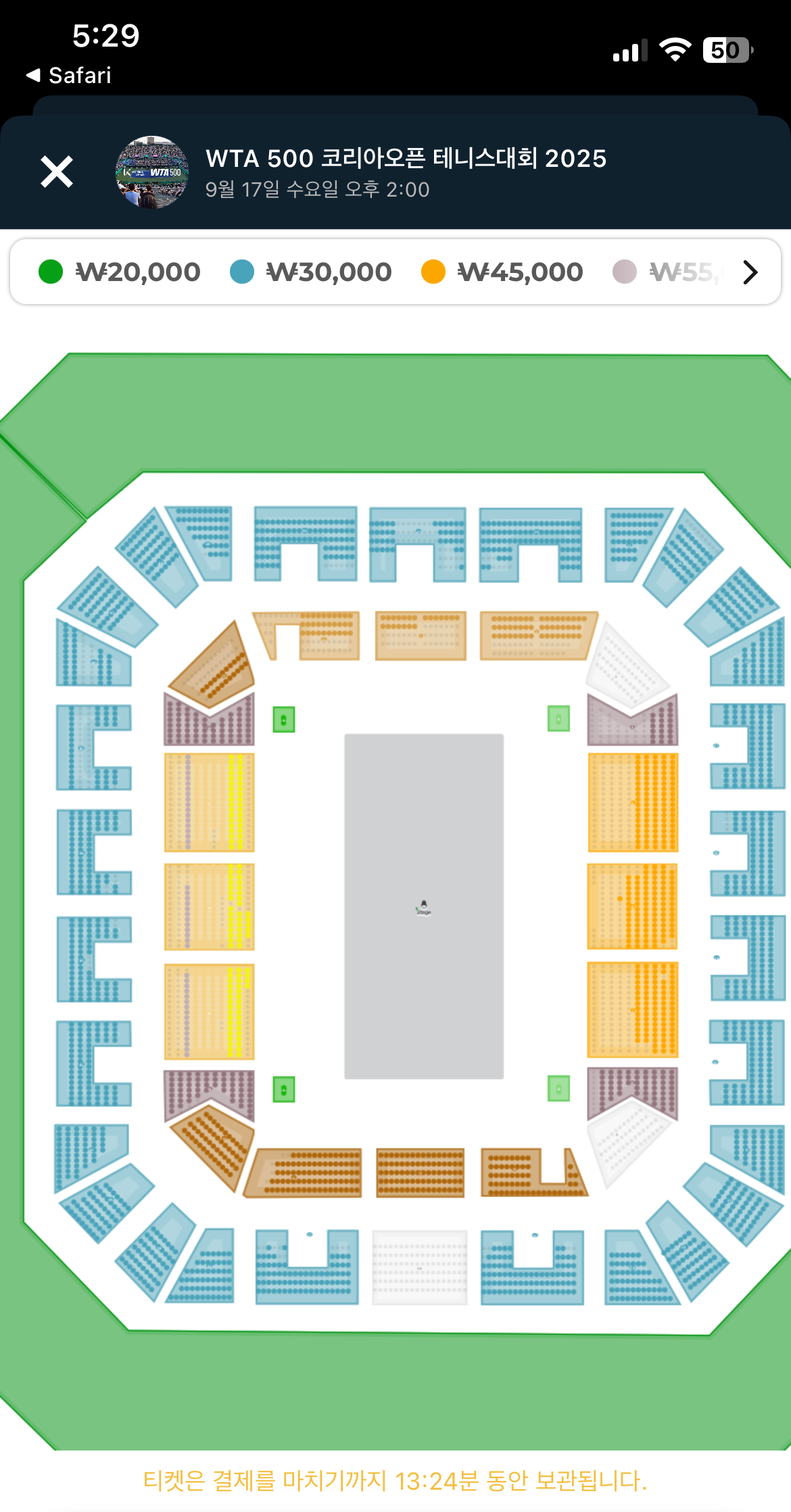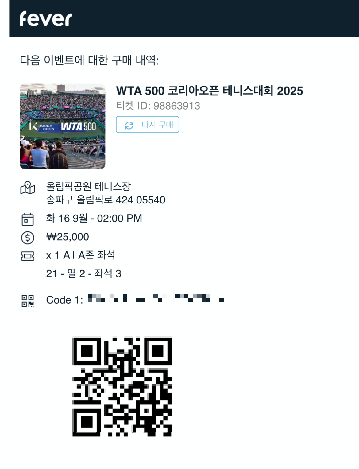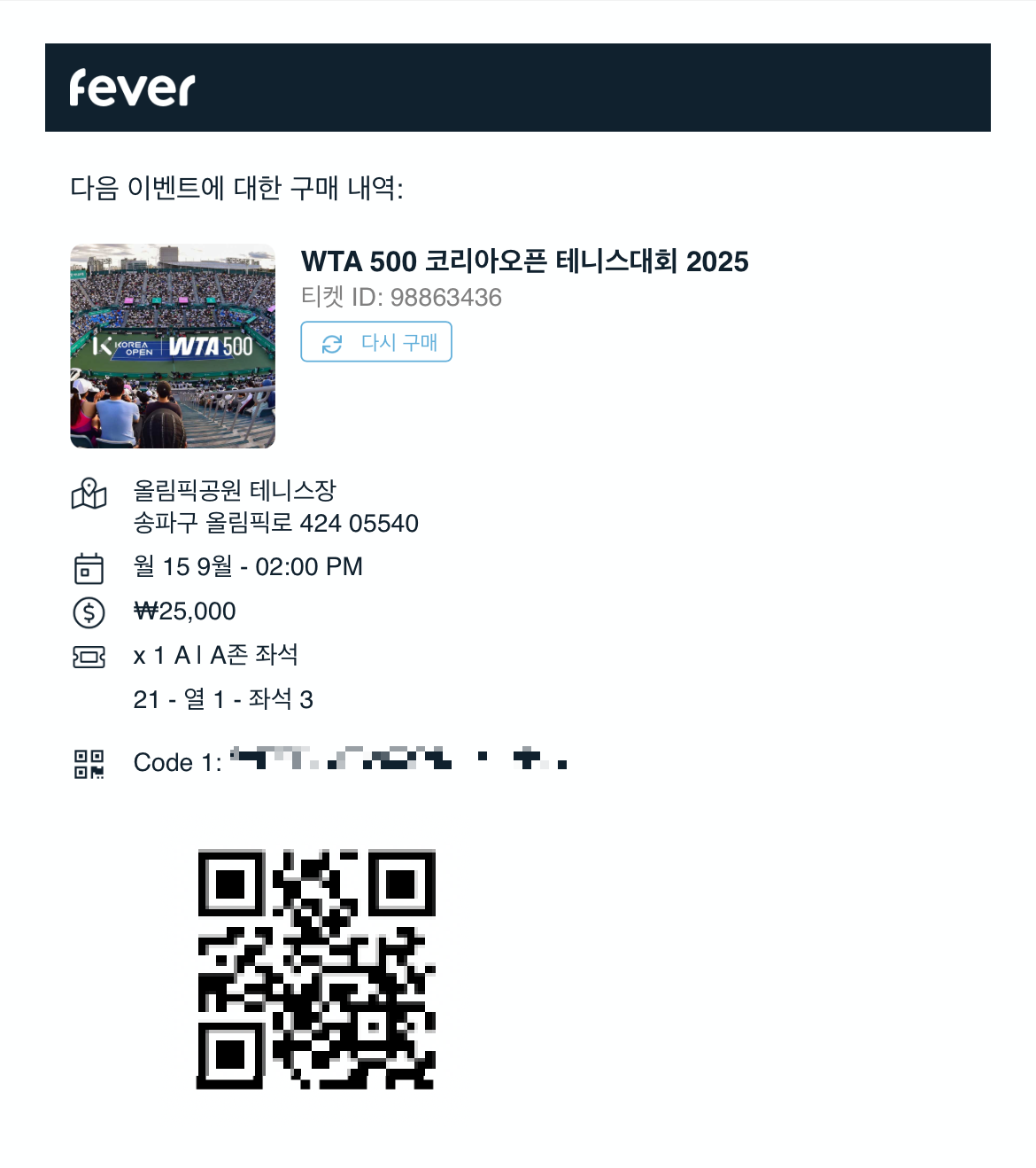 코리아 오픈 2025 테니스 대회 티켓 예매가 진행되어 구입했습니다.