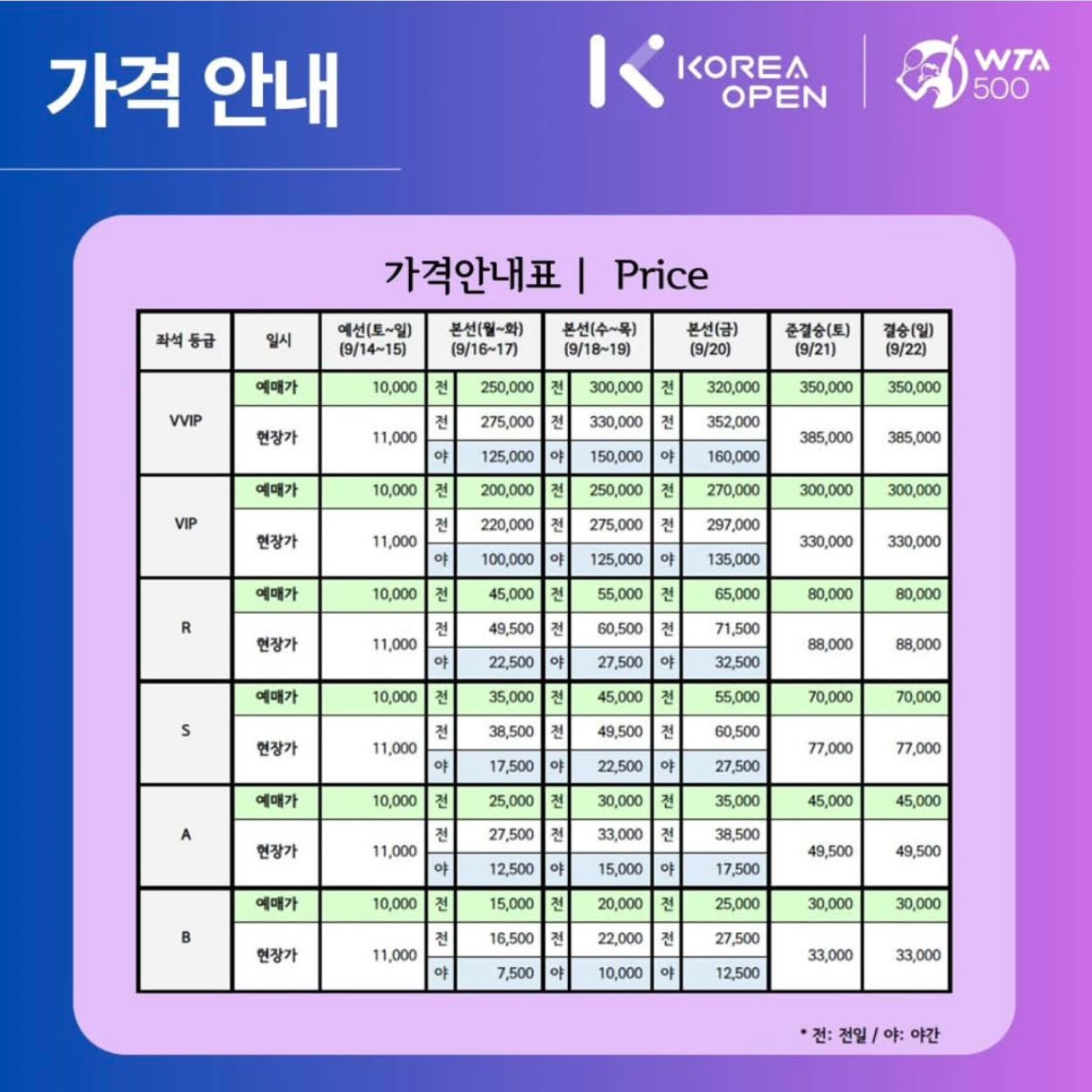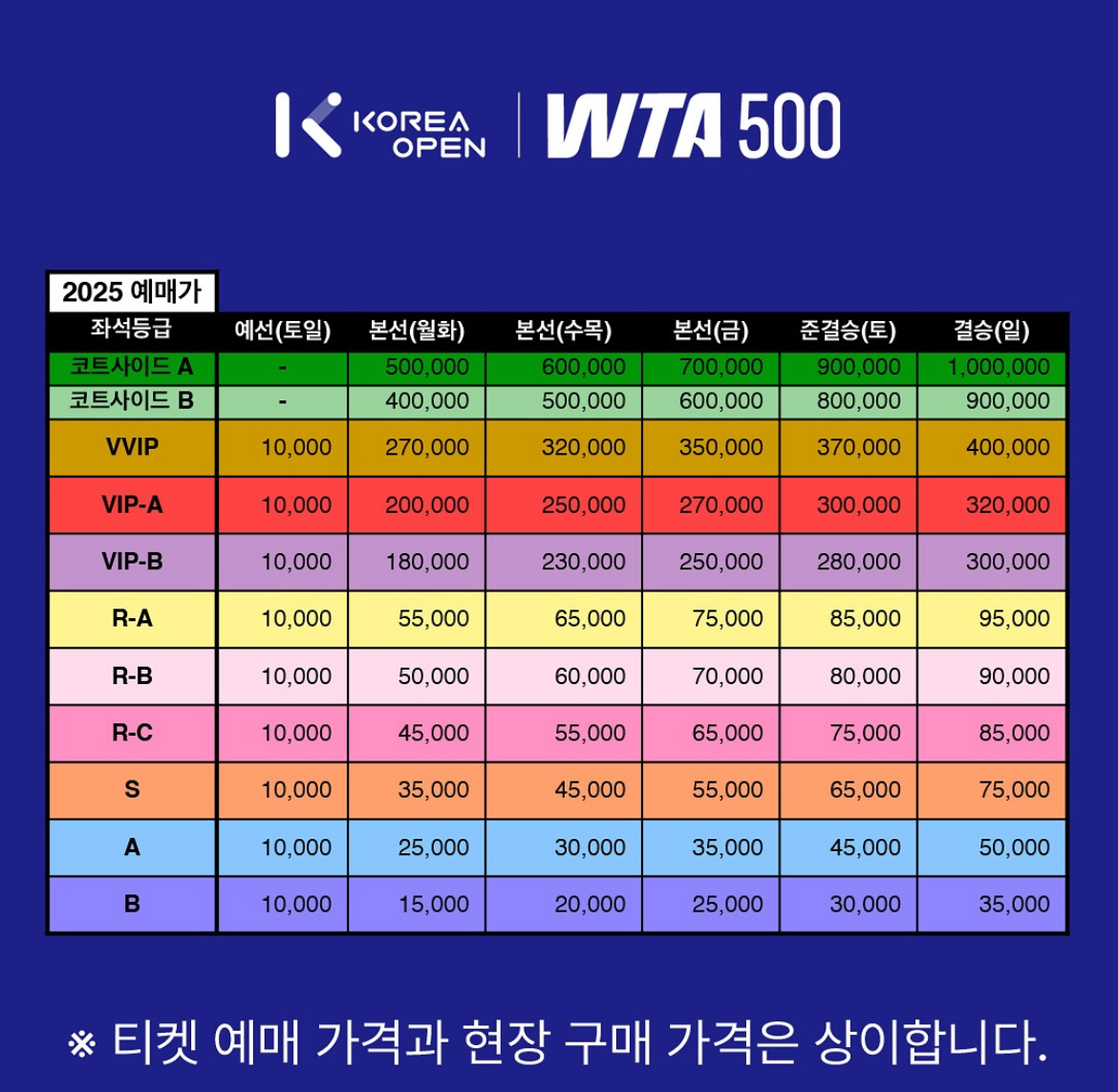 참고, 2024 코리아 오픈 티켓 가격
