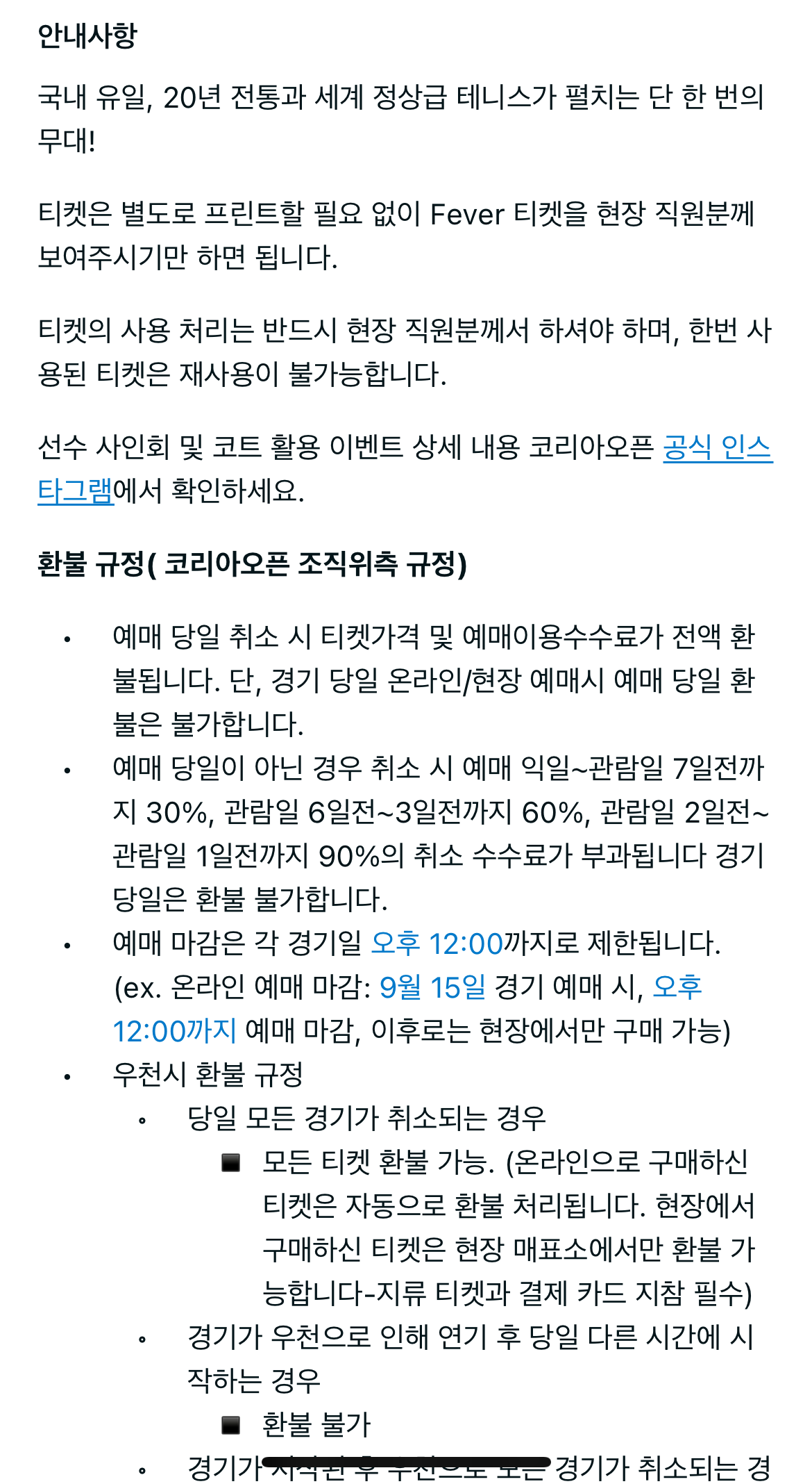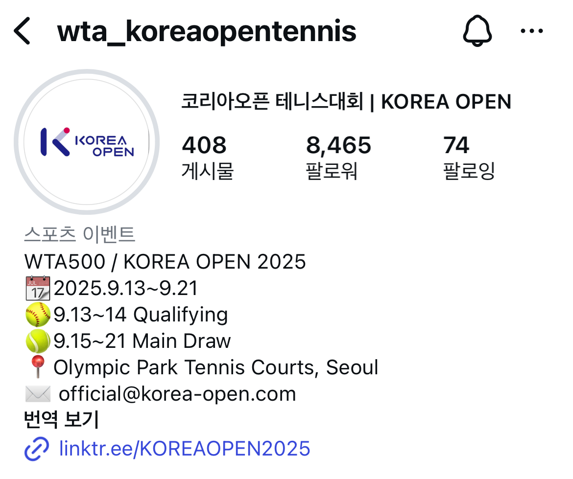모든 공지 사항은 인스타그램 KOREA OPEN 에서만 확인 가능합니다.
