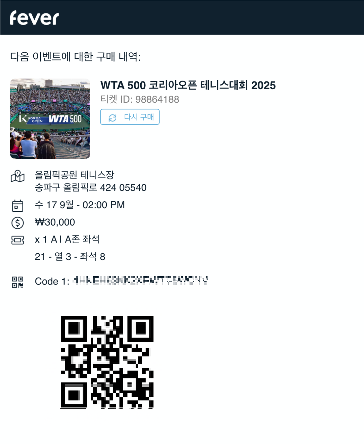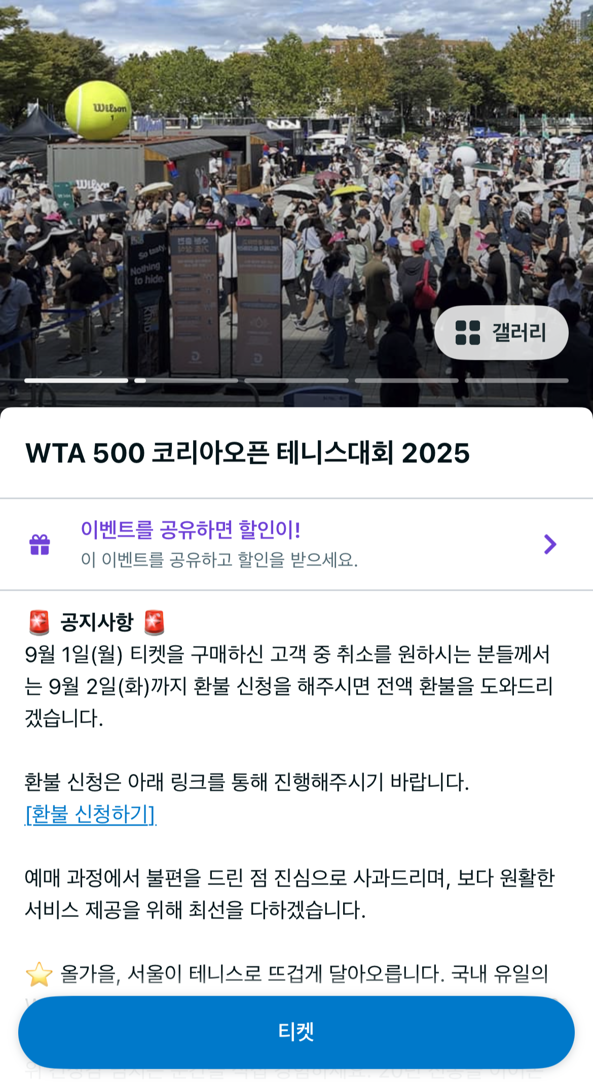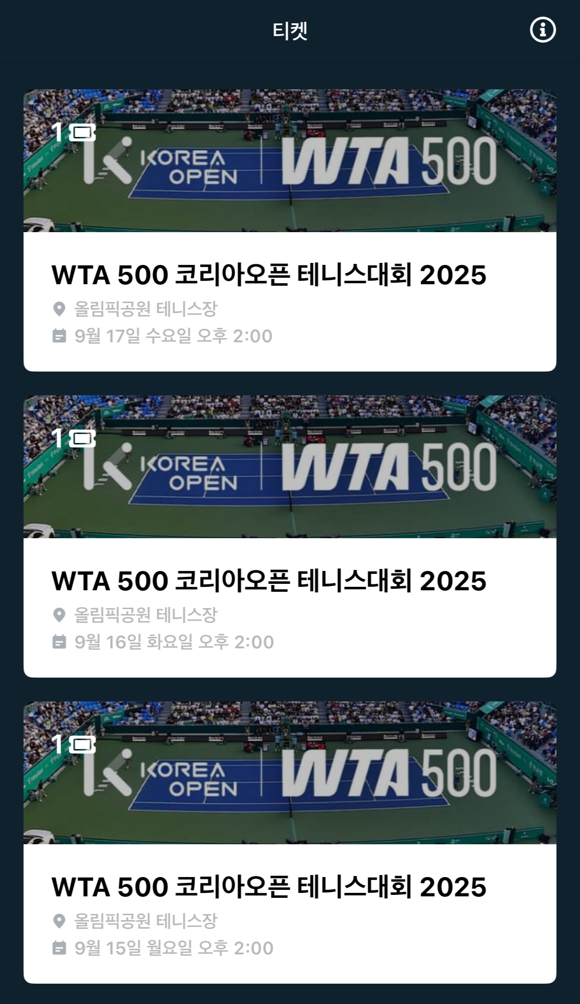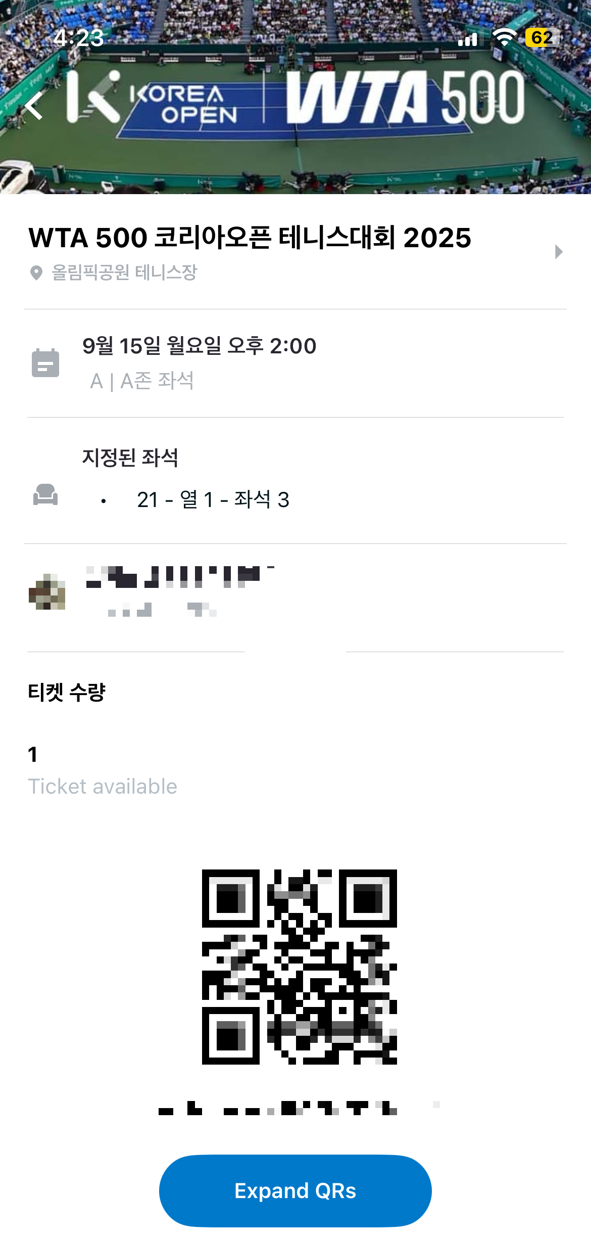 코리아 오픈 2025 테니스 대회 티켓 예매가 진행되어 구입했습니다.