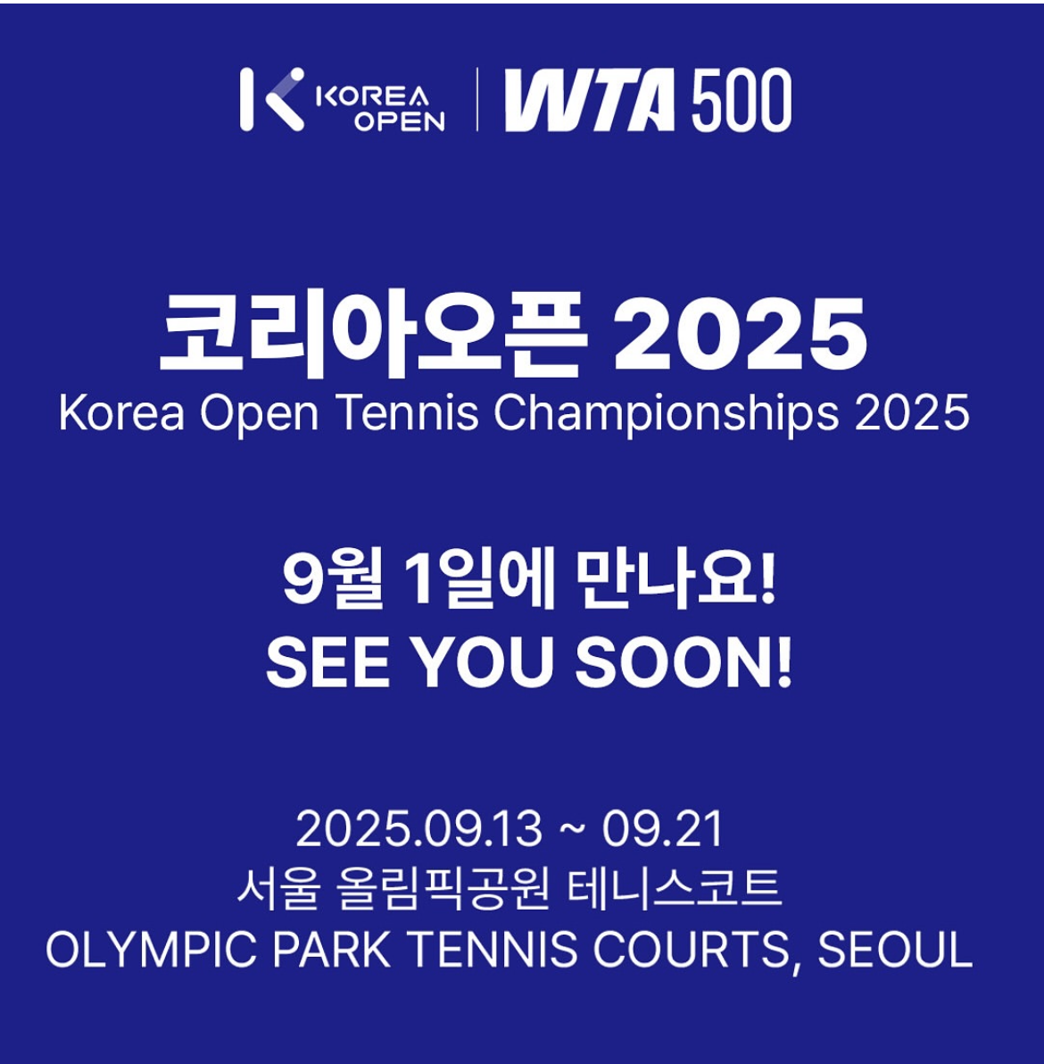 | 테니스, WTA500 2025 코리아 오픈 19일 우천 공지 (0) | 2025.09.19 |