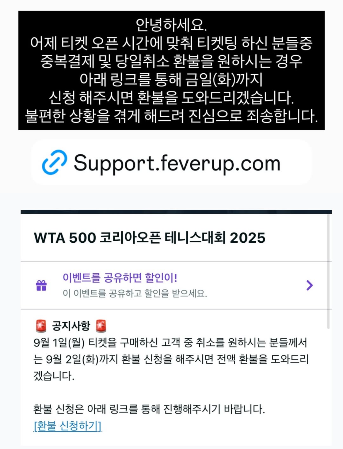 이번 예매 사이트는 환불 규정이 소비자에게 불리합니다.