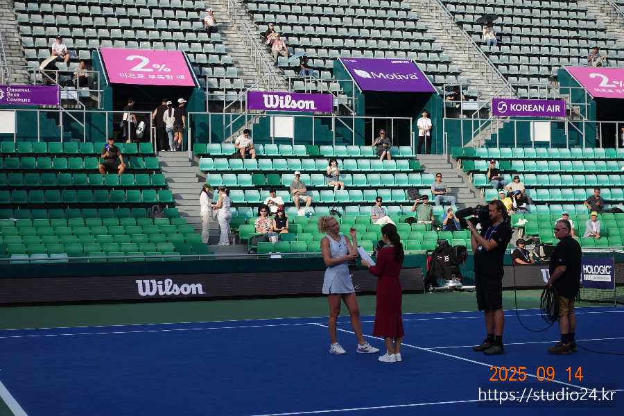 센타 코트에서는 한국의 박소현 선수와 카테리나 시니아코바 선수의 대결이 진행되고 있었습니다.