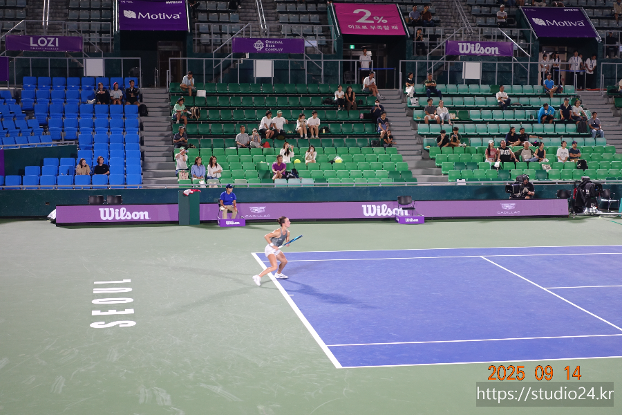 센타 코트에서는 한국의 박소현 선수와 카테리나 시니아코바 선수의 대결이 진행되고 있었습니다.