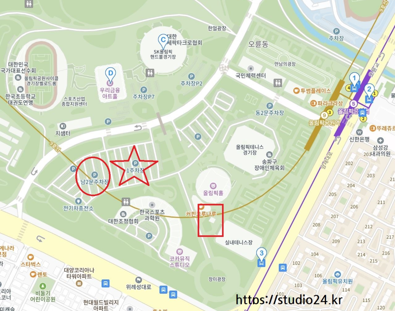 동2문 주차장, 올림픽테니스 경기장 주 출입구